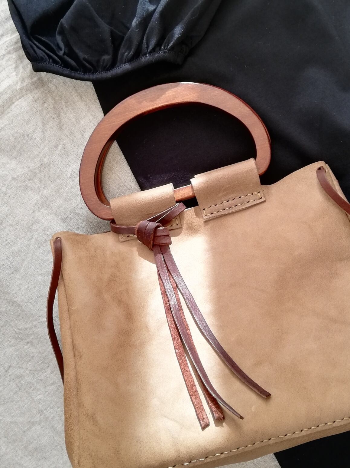 大人の虫かごトート 木の持ち手 グレー オイルシュリンク