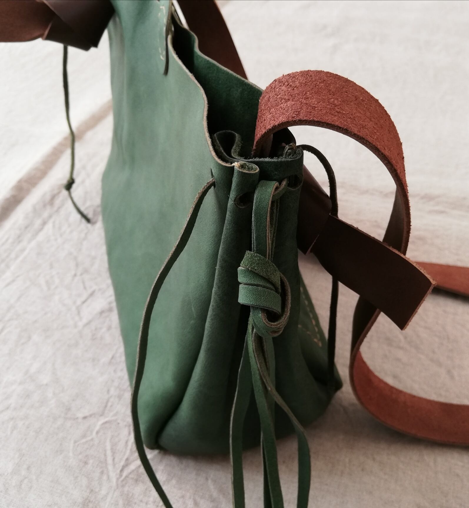 革はくったり柔らかく、植物性タンニンで鞣されたオイルシュリンクレザーで、とても軽いのが特徴です