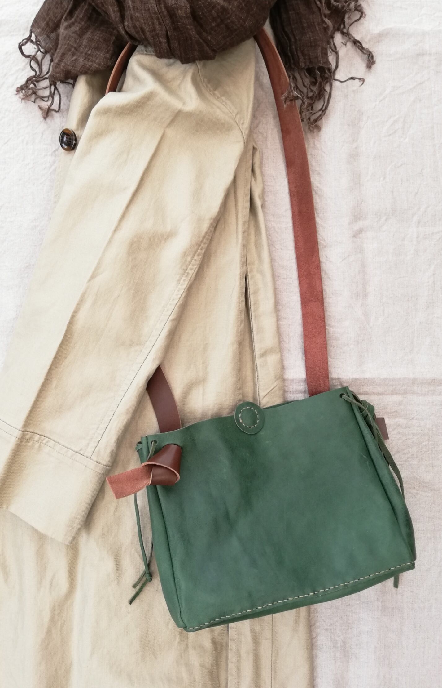 大人の虫かごショルダー グリーン オイルシュリンク ボディバッグ