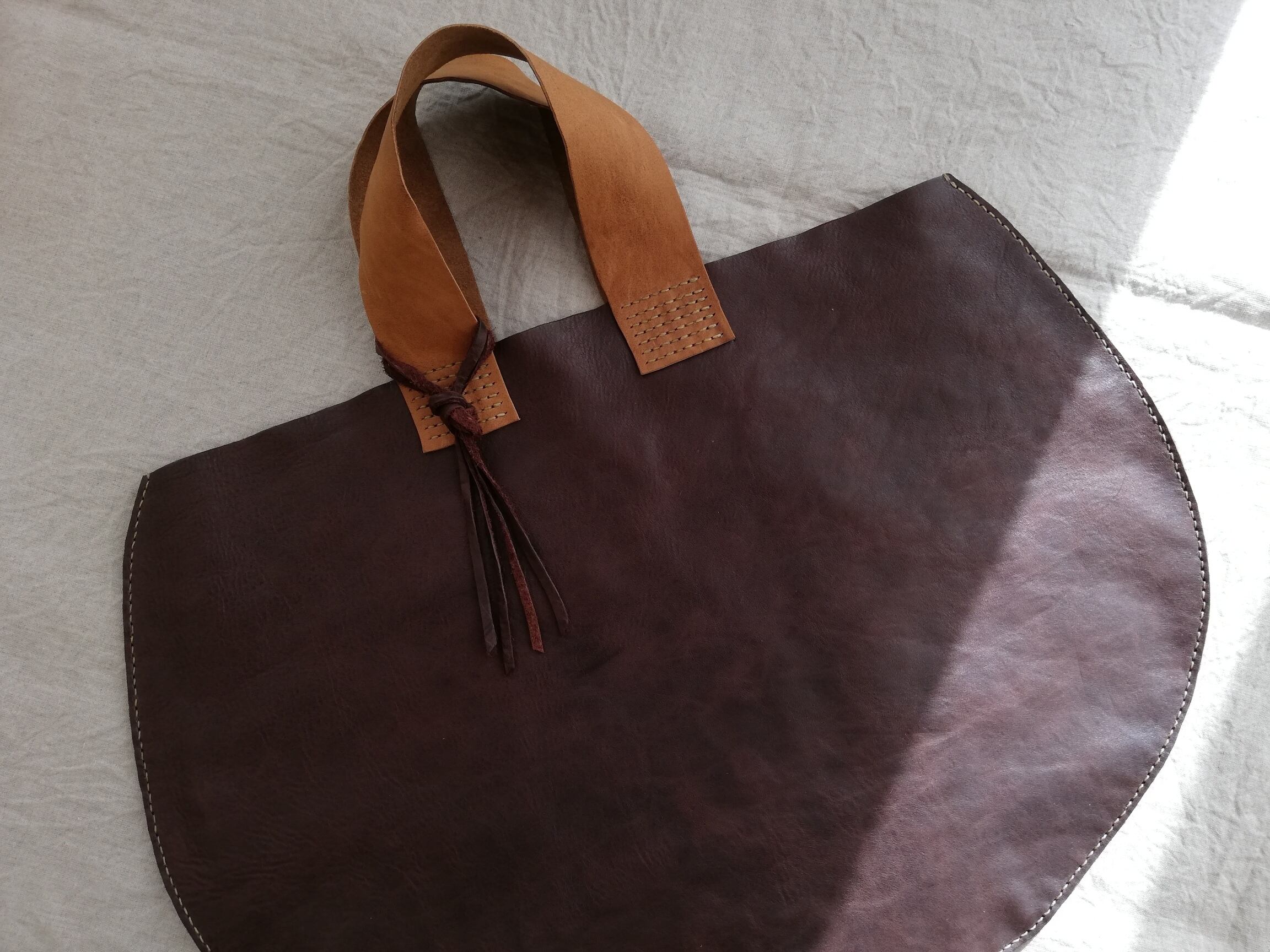 Round tote オイルシュリンクレザー チョコ