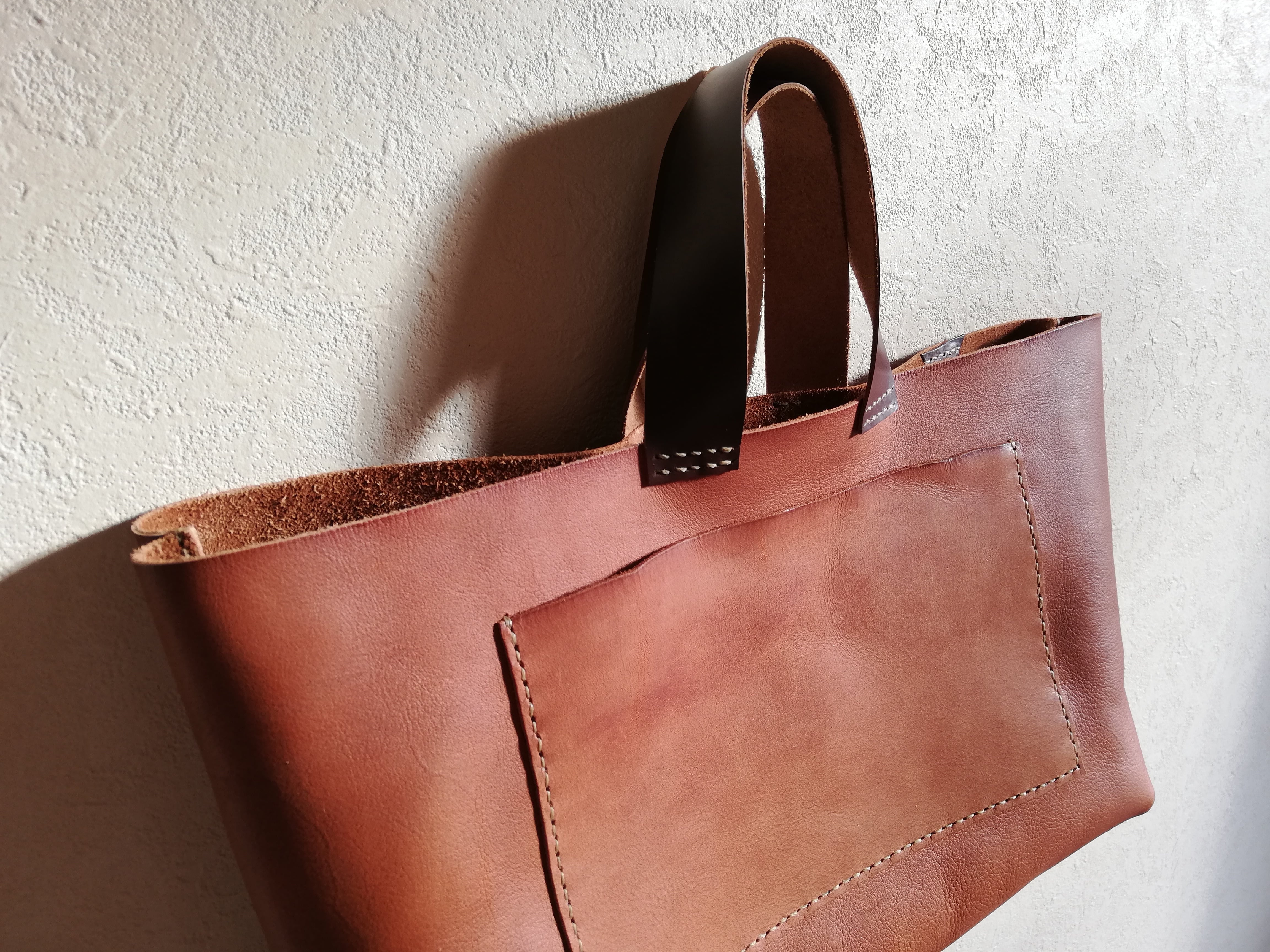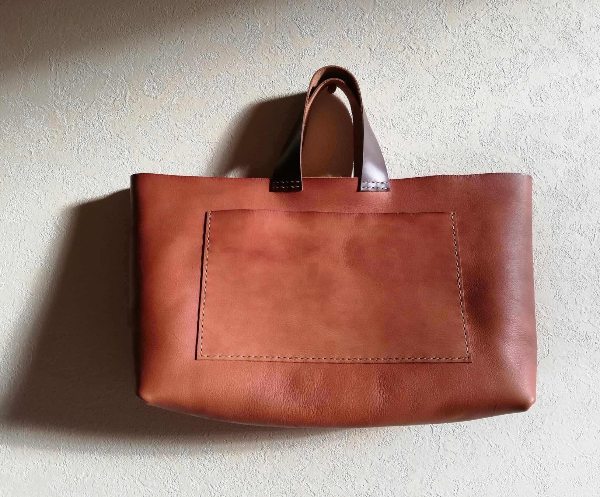 革は、アニリン仕上げにより経年変化を楽しめる上質な牛ヌメ革です