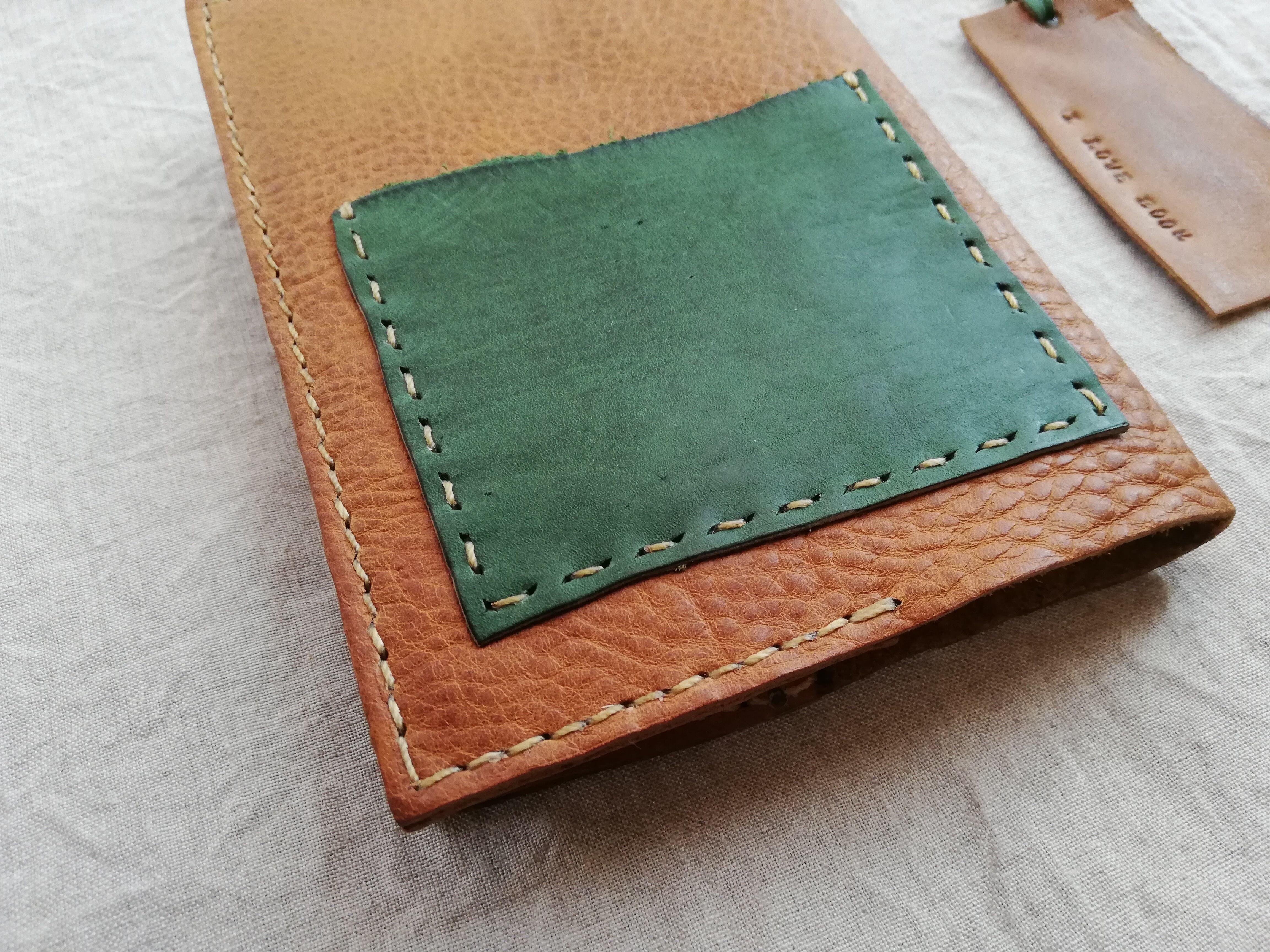 ブックカバー オイルシュリンクレザー ブラウン✗グリーン
