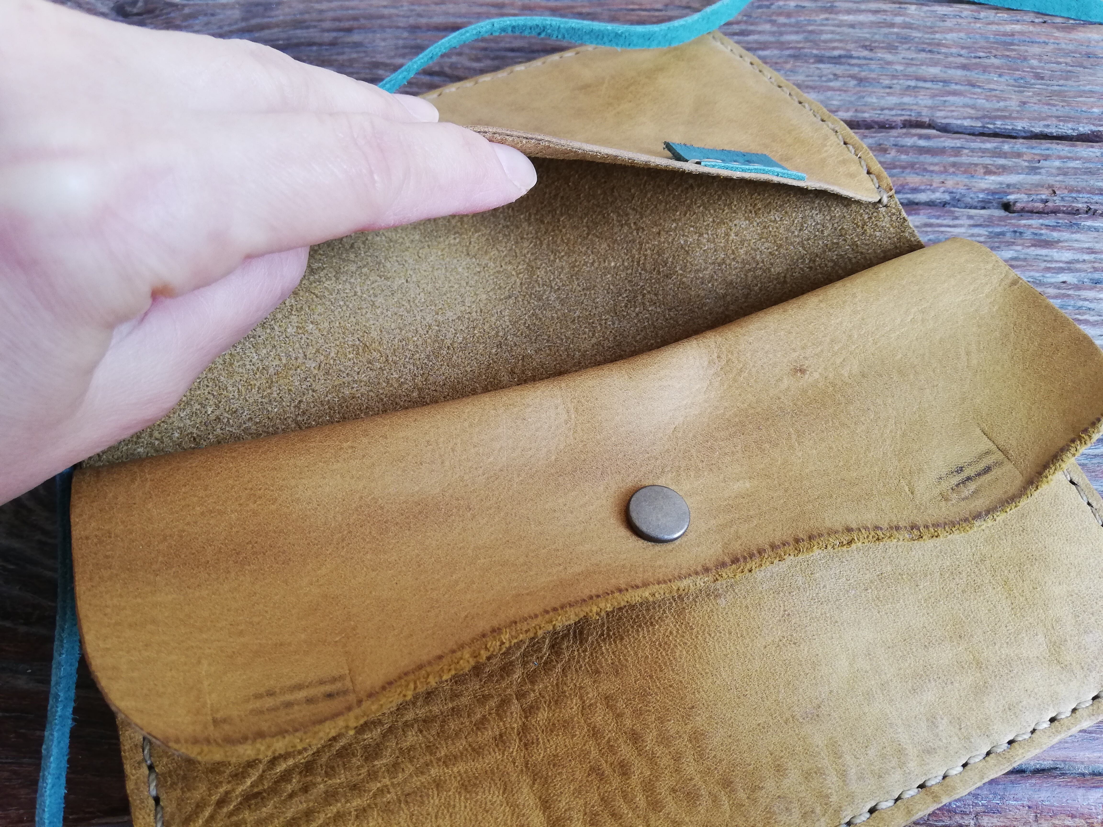 simple wallet オイルシュリンクレザー マスタードイエロー✗ブルーグリーン