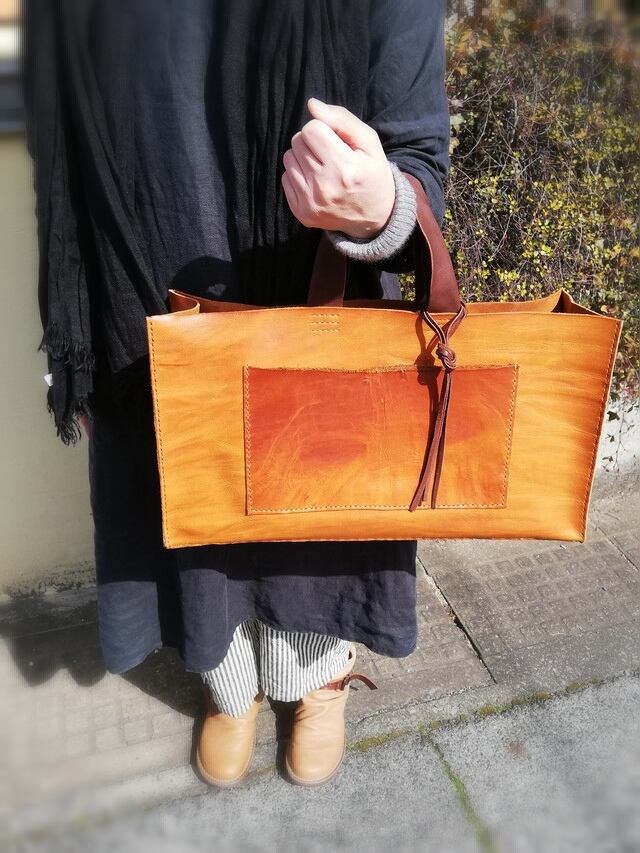 革は、1枚1枚ほぼ手絞りによるランダムなヴィンテージ感のあるシワがあり、オイル効果により、伸縮性に富み、耐久性の高い素材です