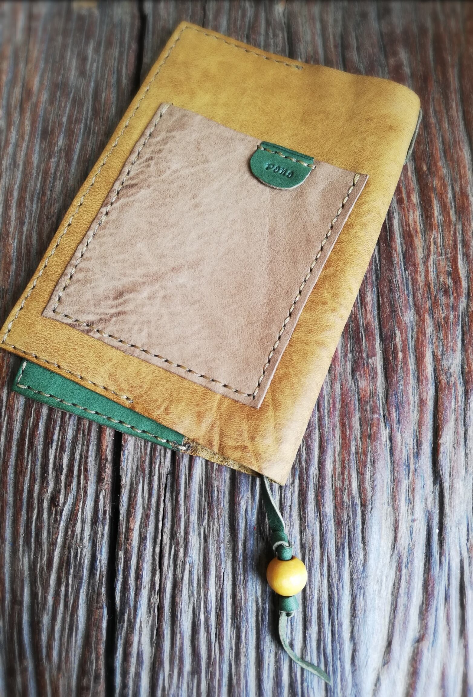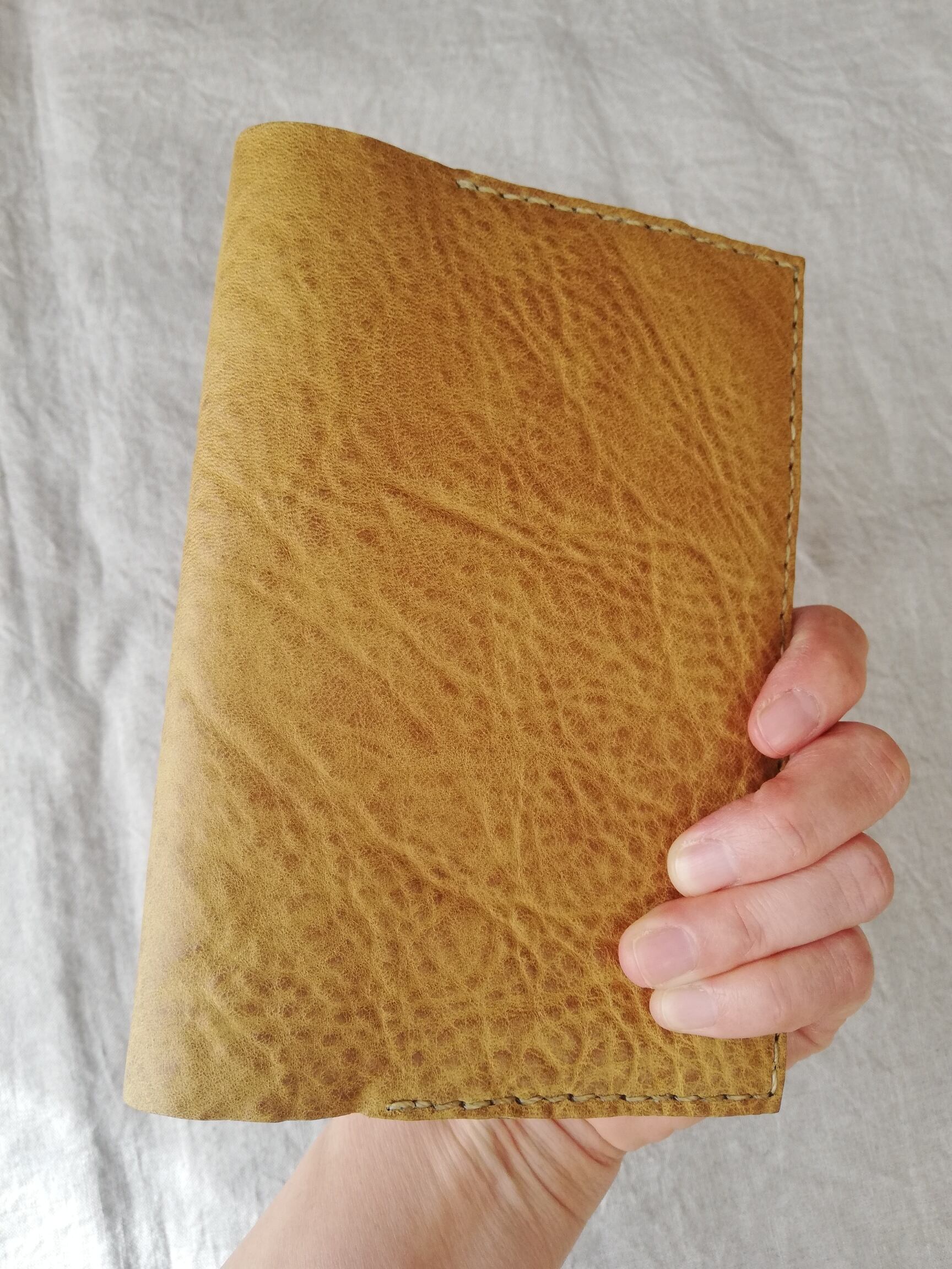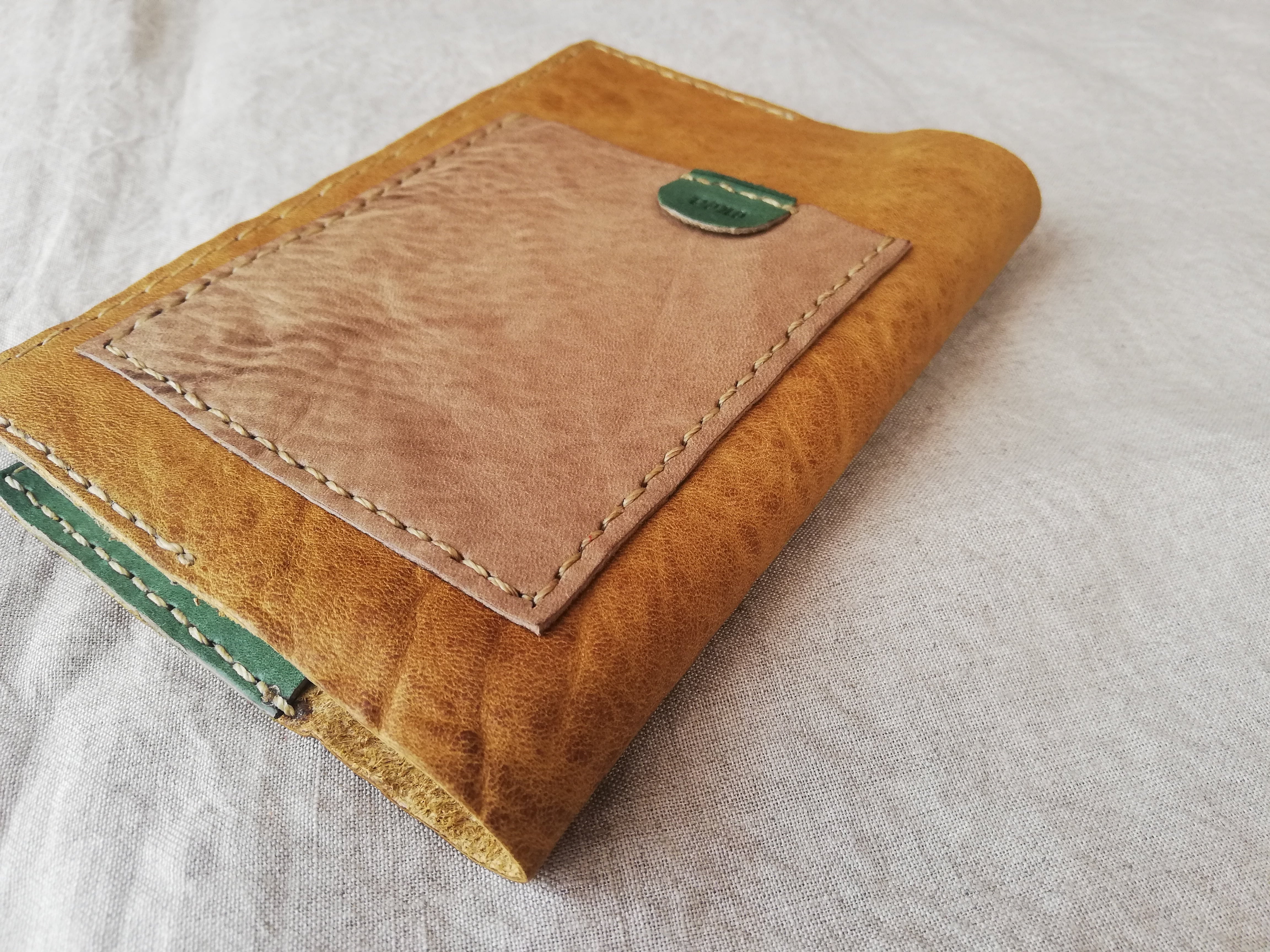 ブックカバー オイルシュリンクレザー マスタードイエロー✗グレー✗グリーン