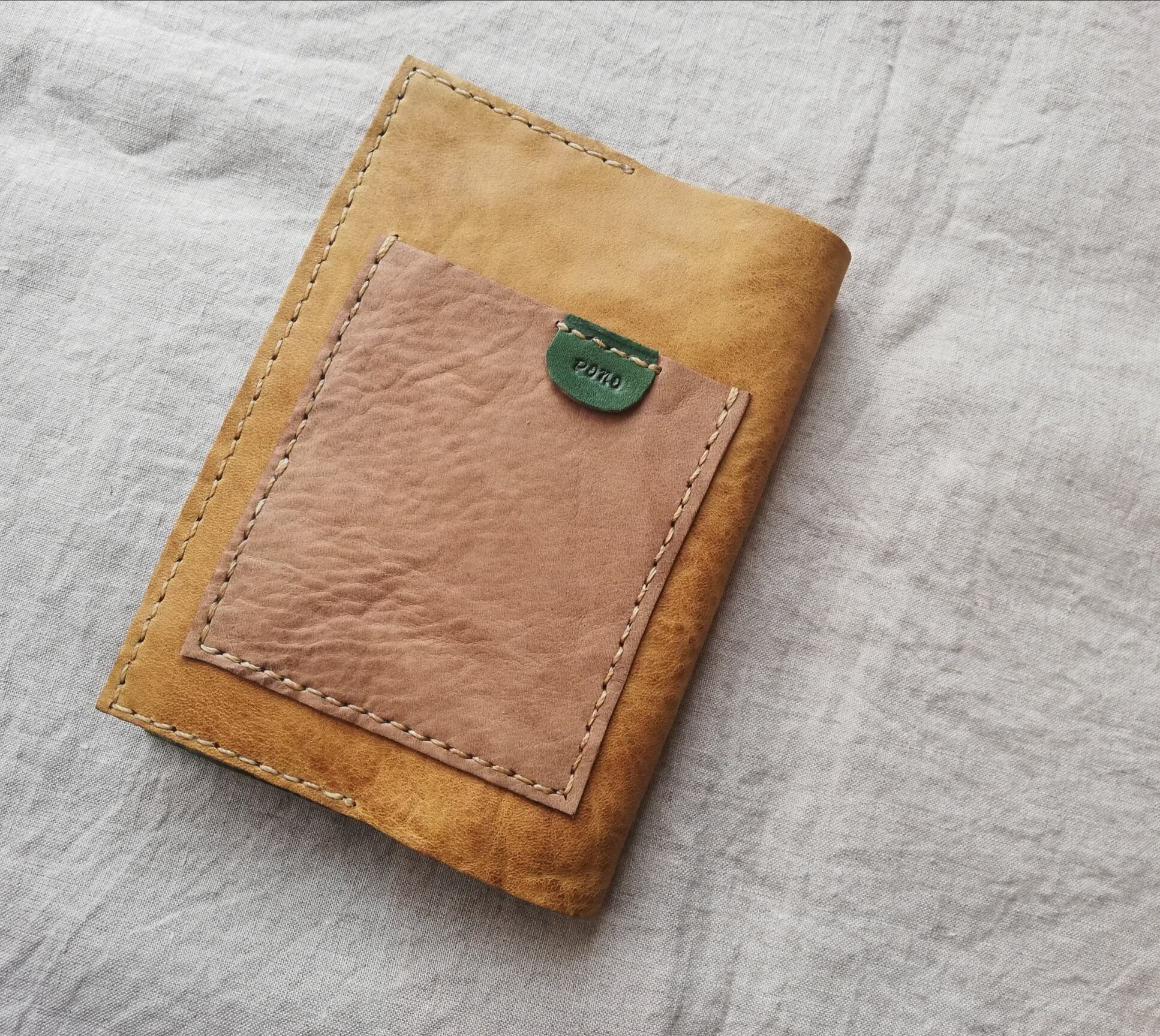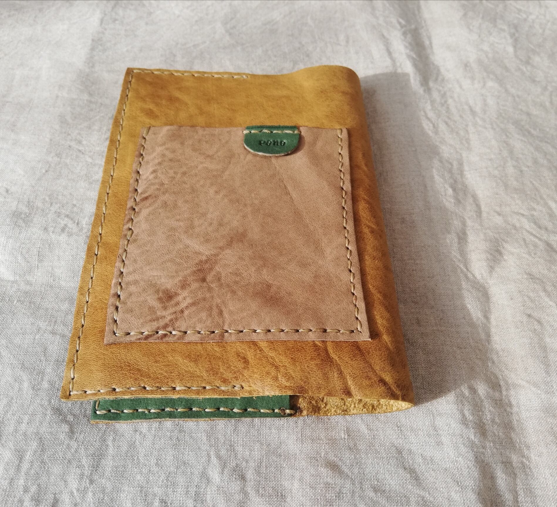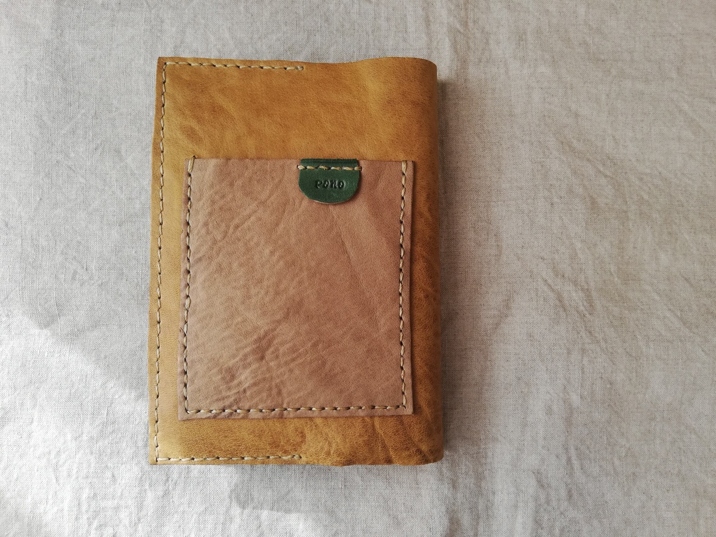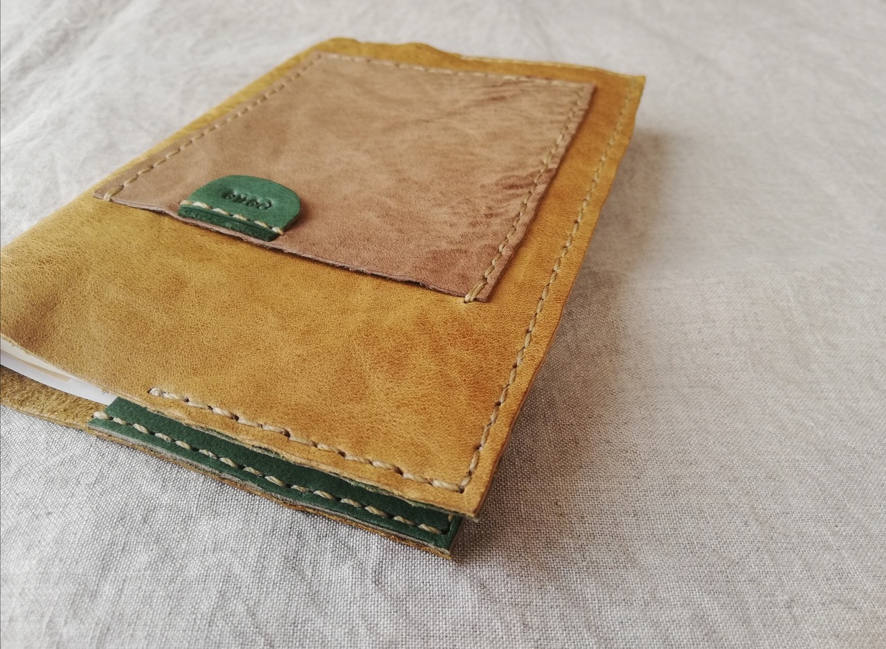 ブックカバー オイルシュリンクレザー マスタードイエロー✗グレー✗グリーン