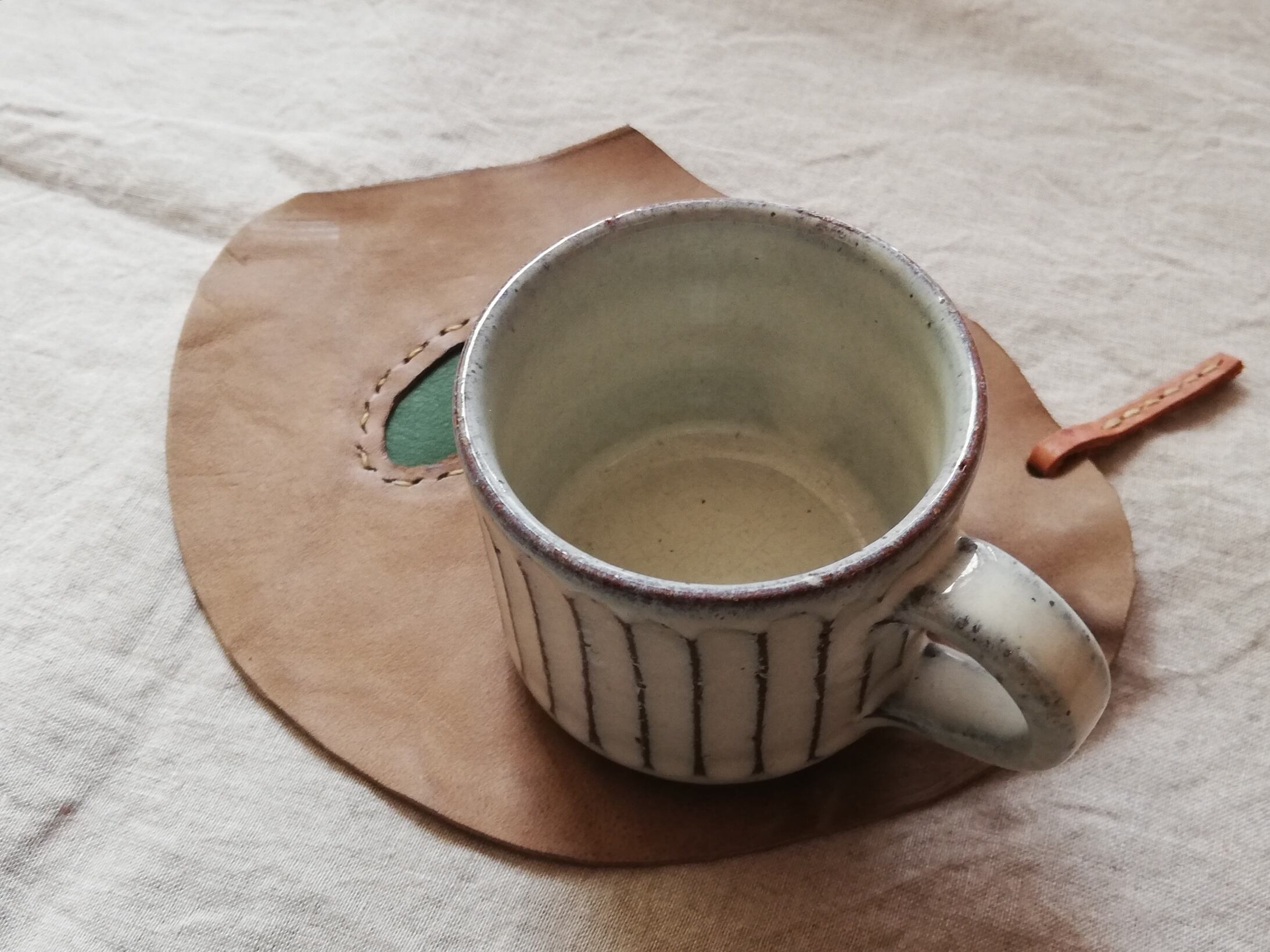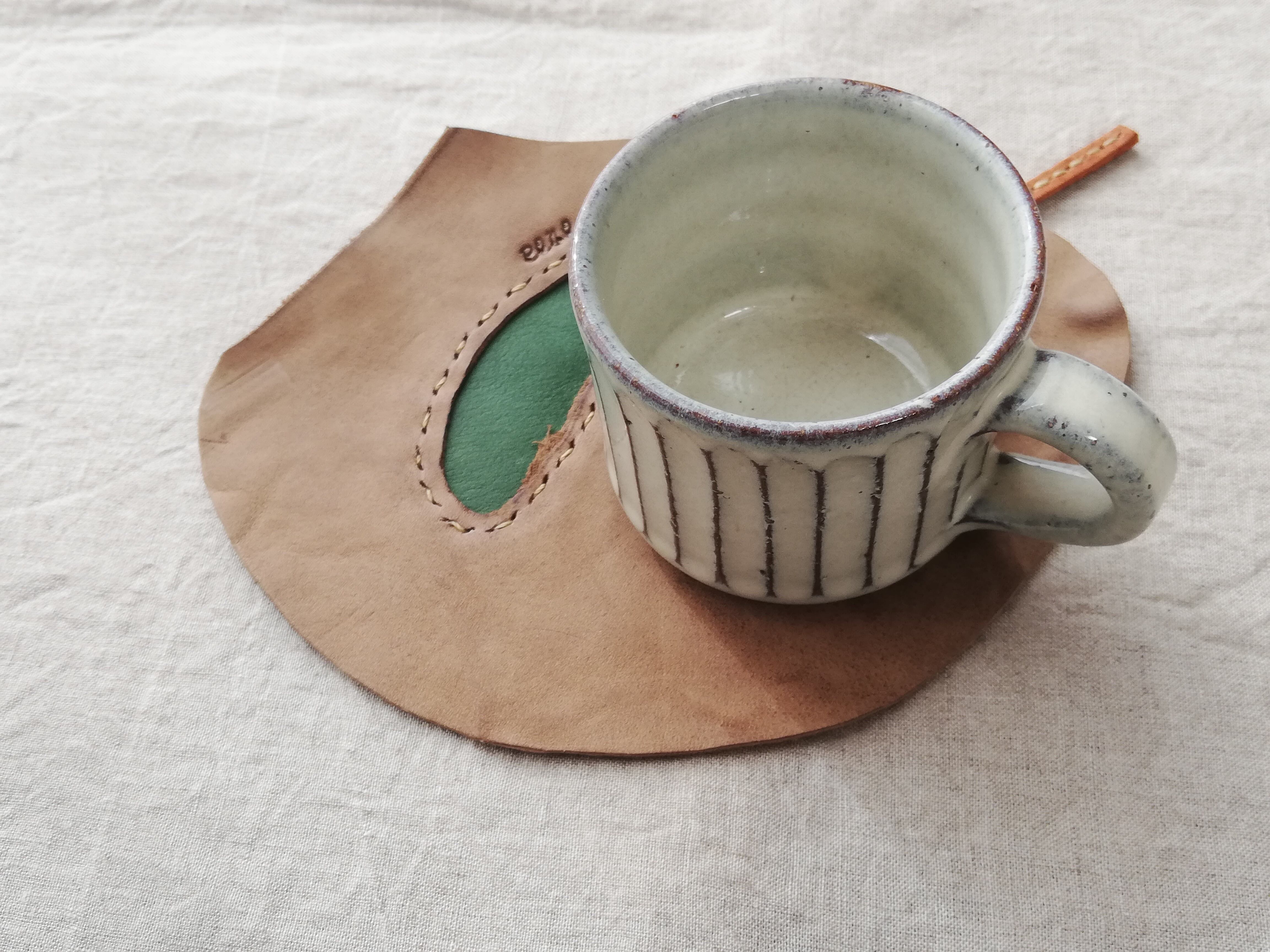 レザーコースター オイルシュリンクレザー グレー✗グリーン
