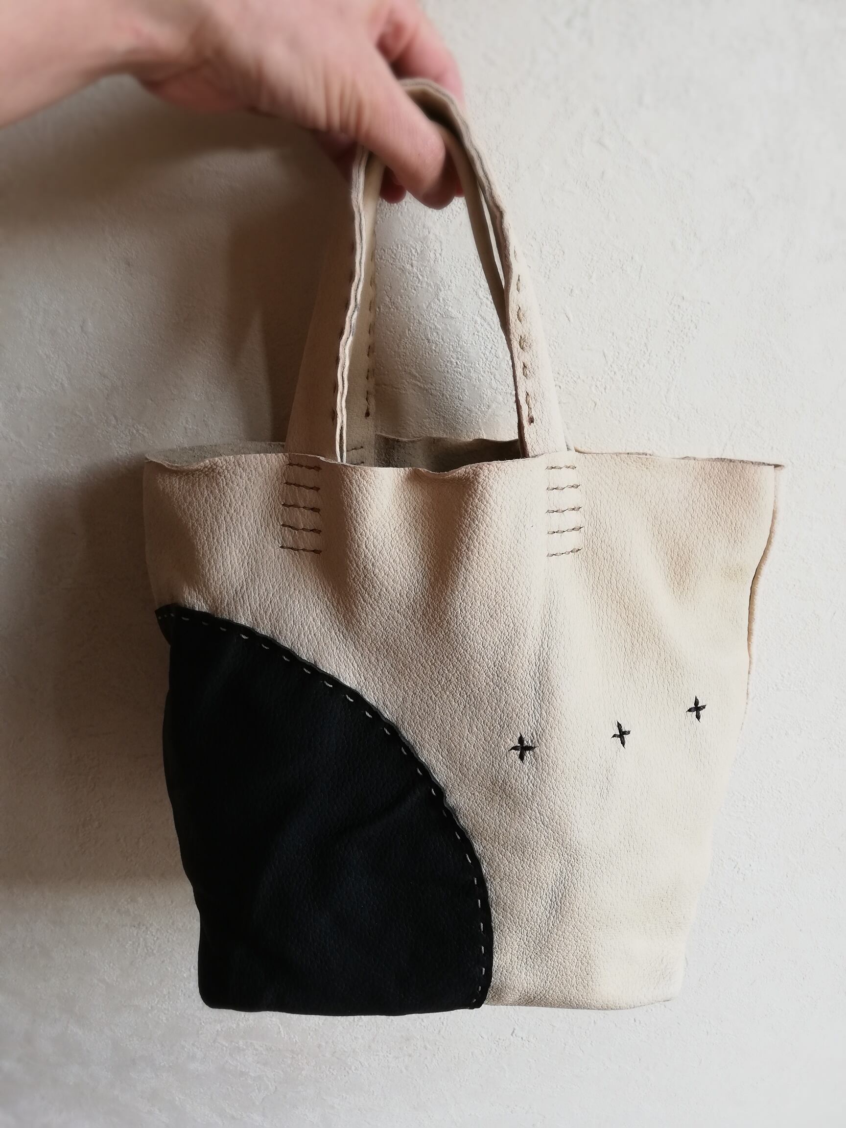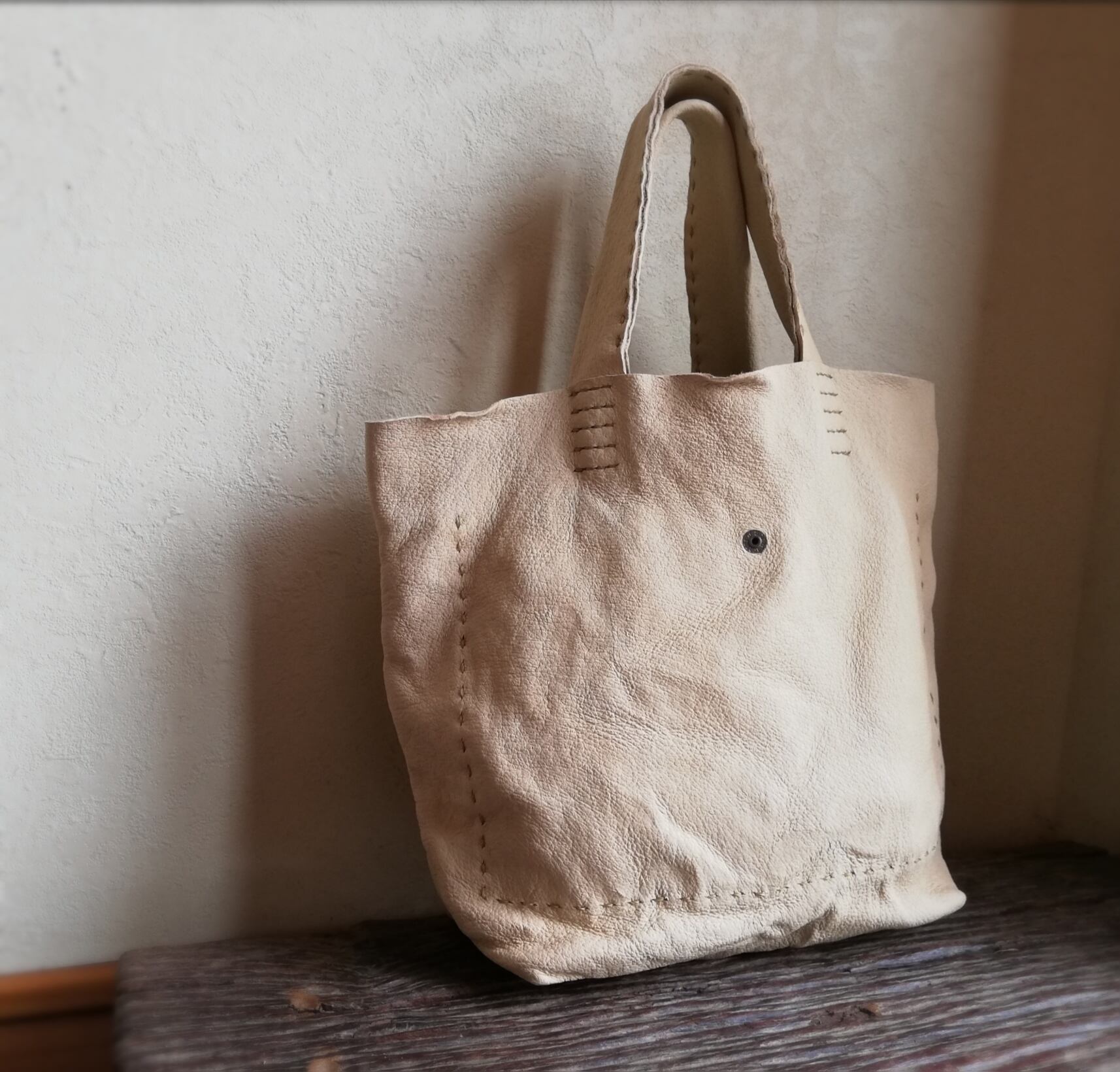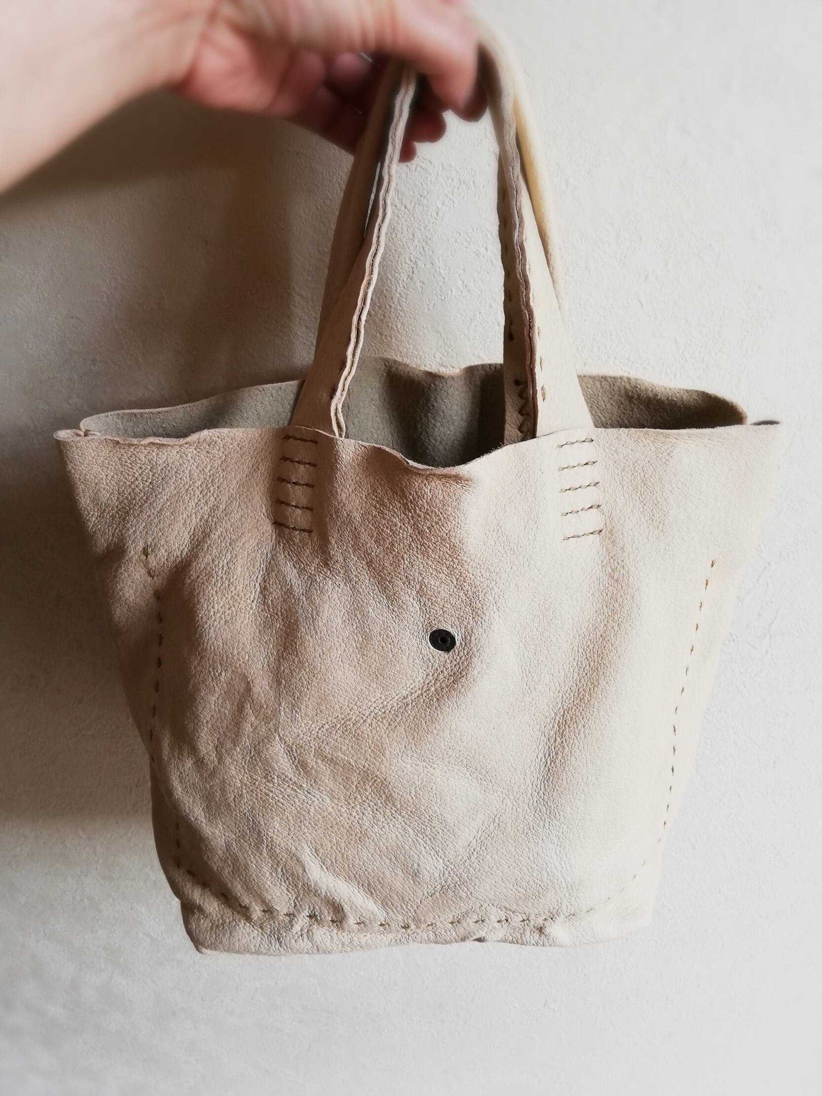 とても軽く、くったり柔らかい革ですので、まるで布袋のよう。