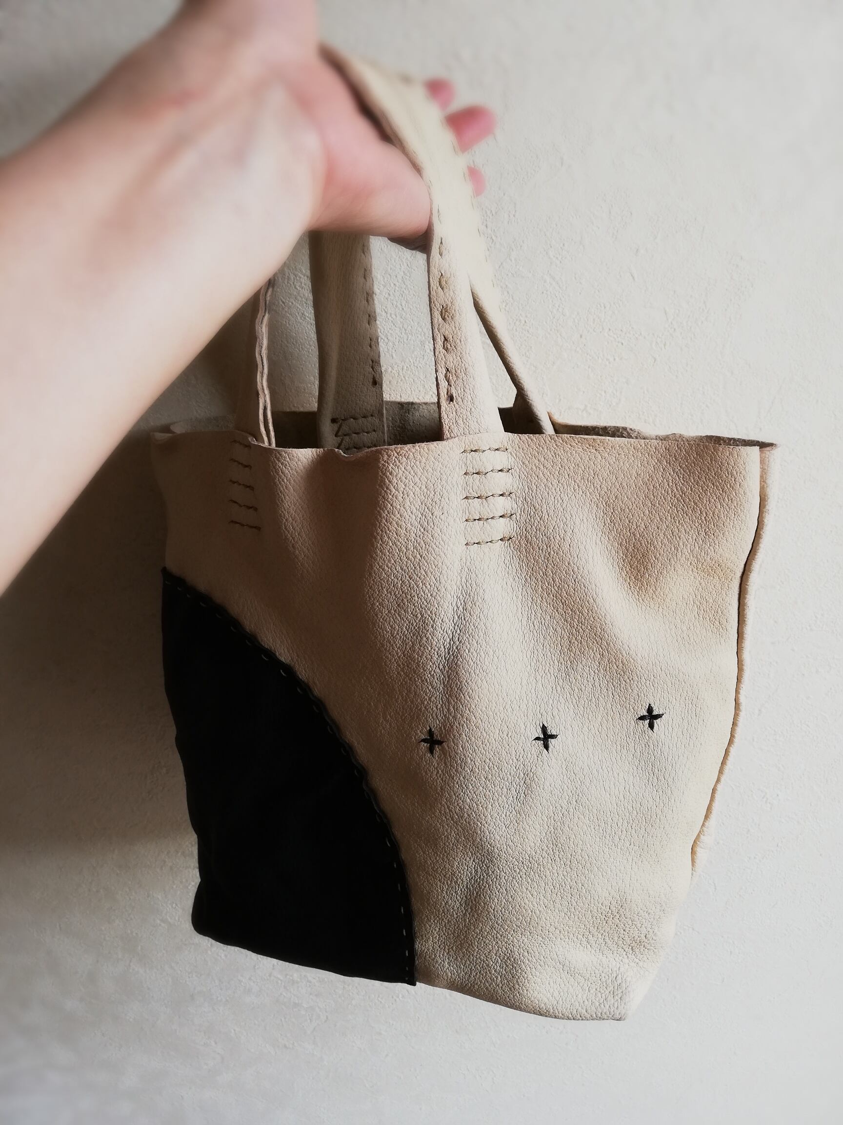 ミニトート ピッグスキン ナチュラルベージュ✗ブラック
