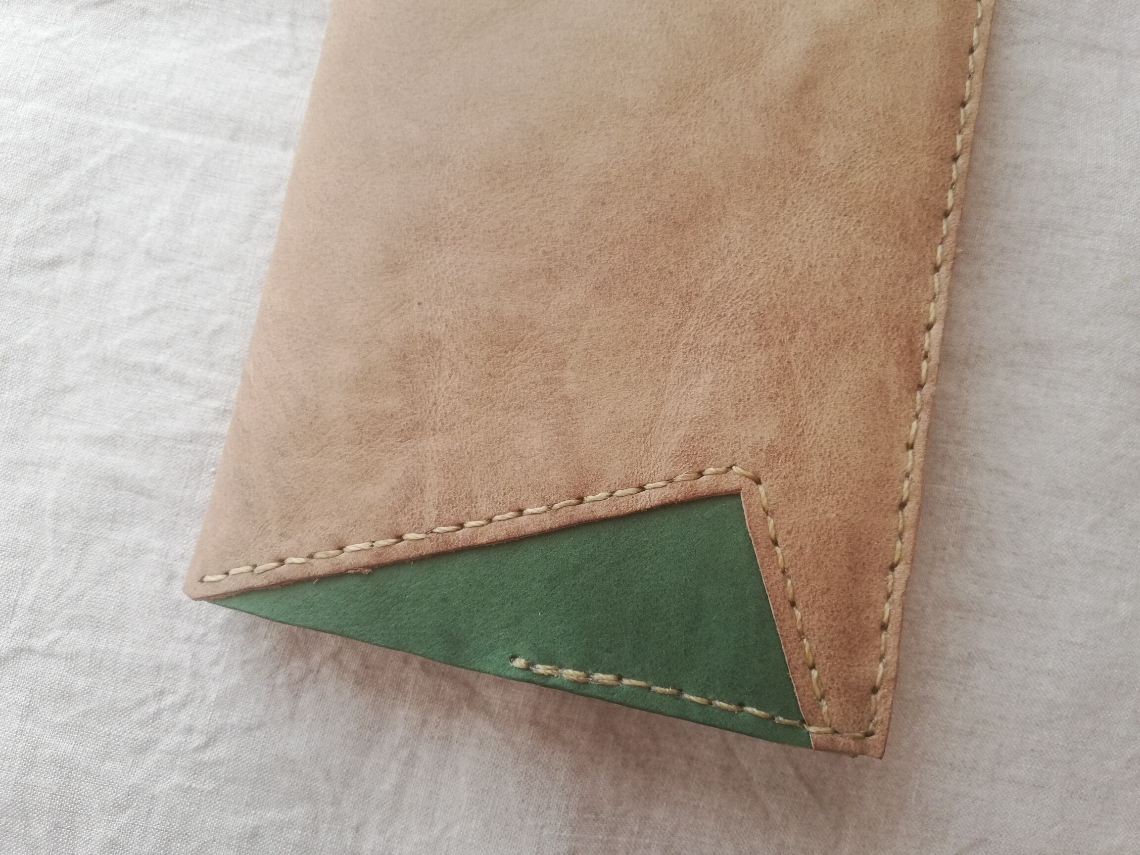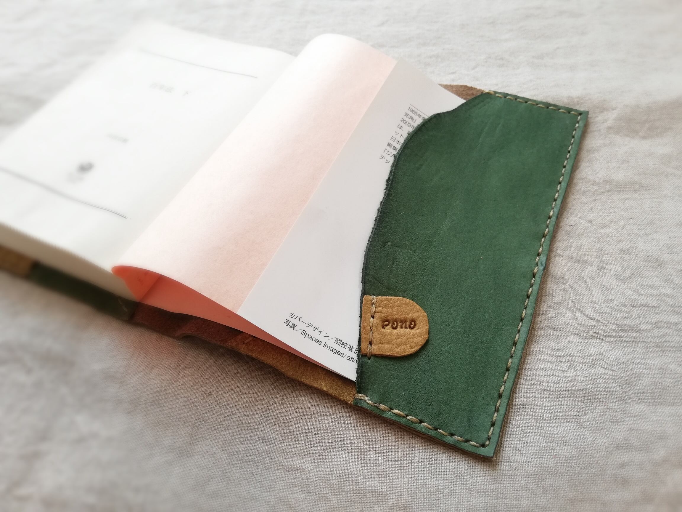 ブックカバー オイルシュリンクレザー グレー✗マスタードイエロー✗グリーン