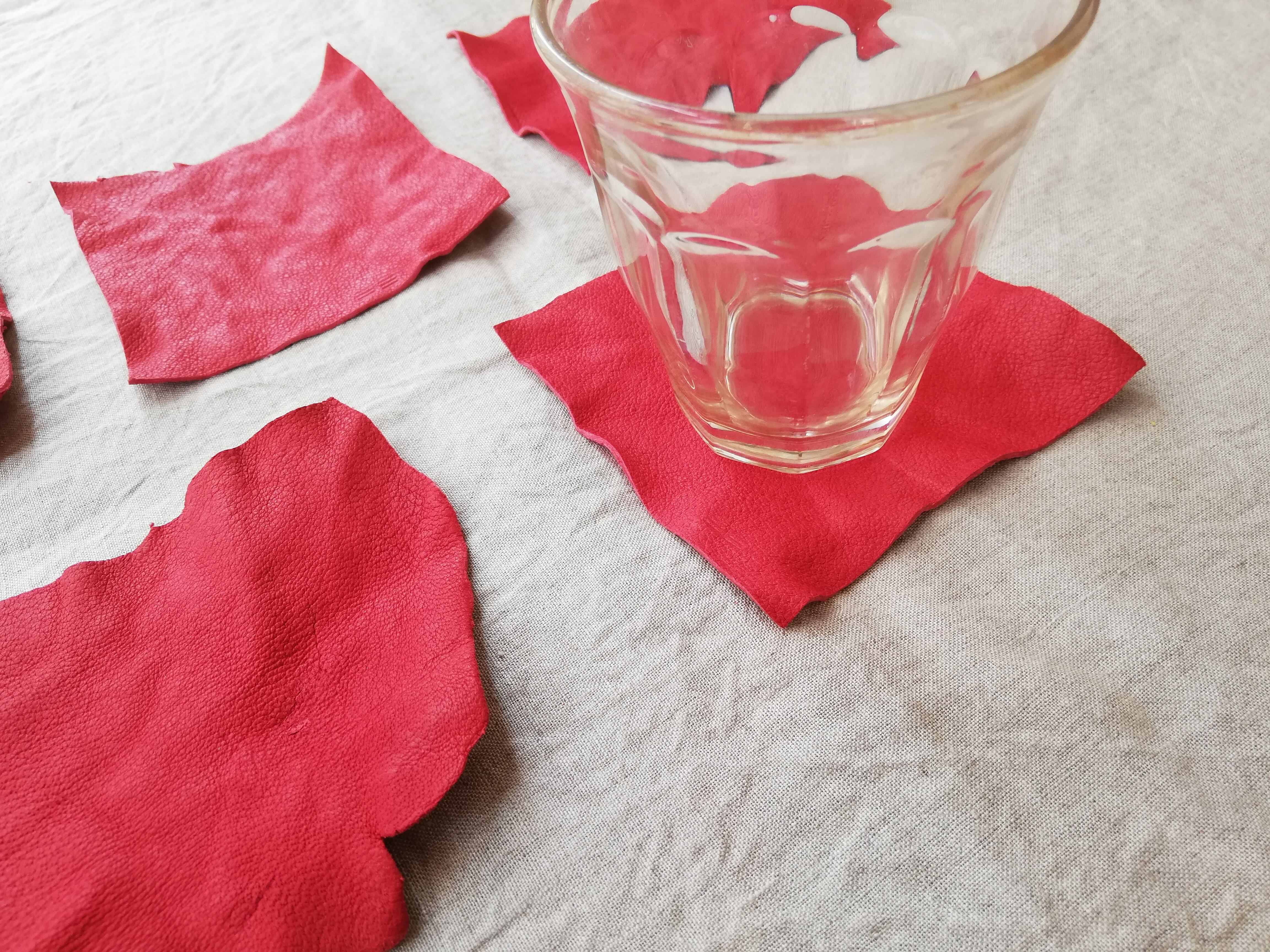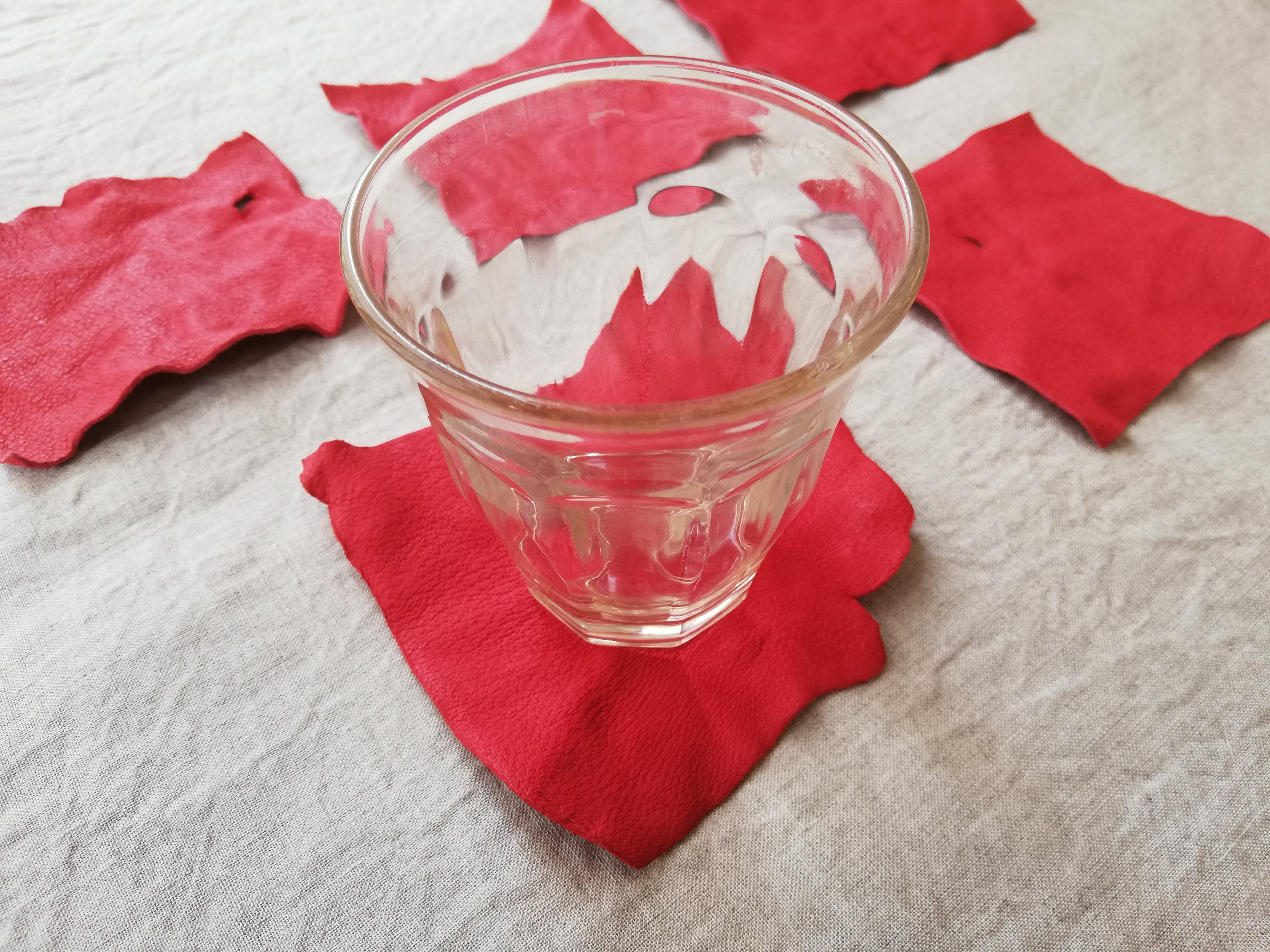5点セット de レザーコースター ピッグスキン ウォッシュ加工 チェリーレッド ②