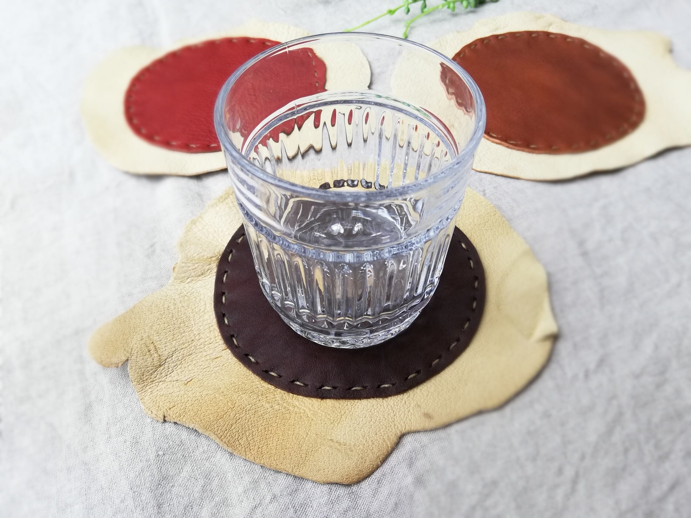 レザーコースター、3点セットです