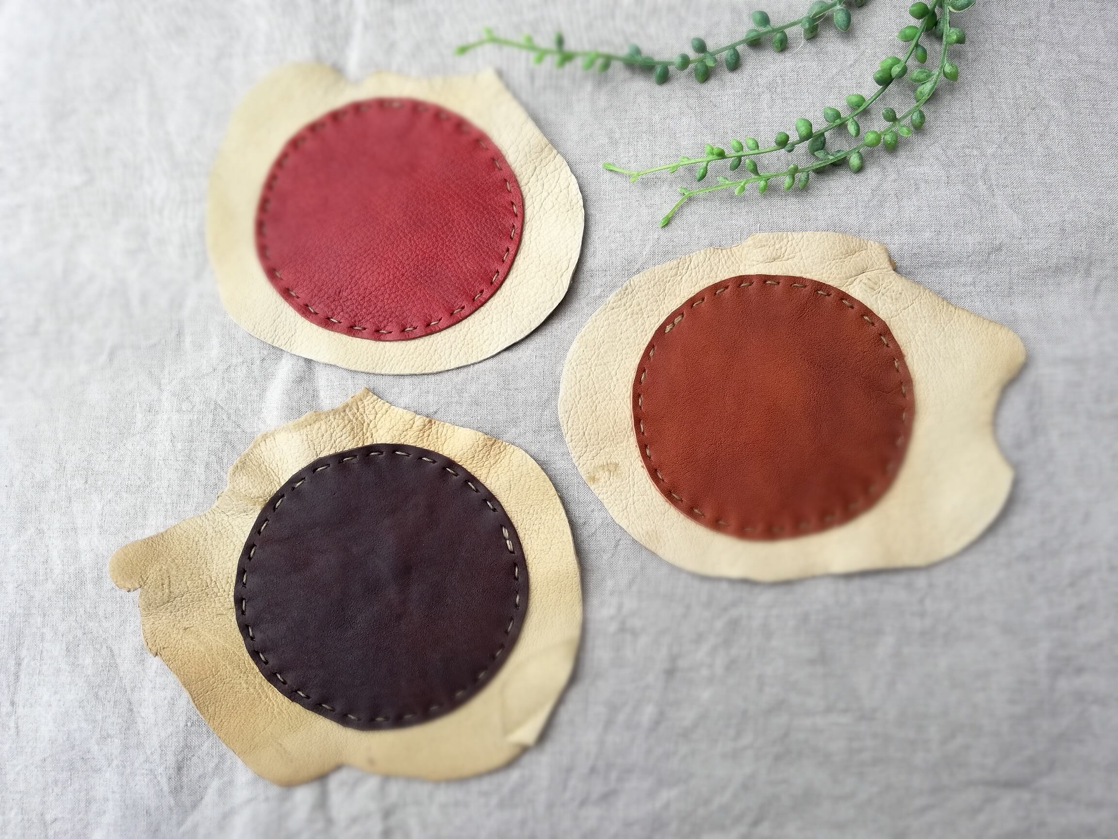 【オーダー品】3点セット de レザーコースター ピッグスキン 牛革