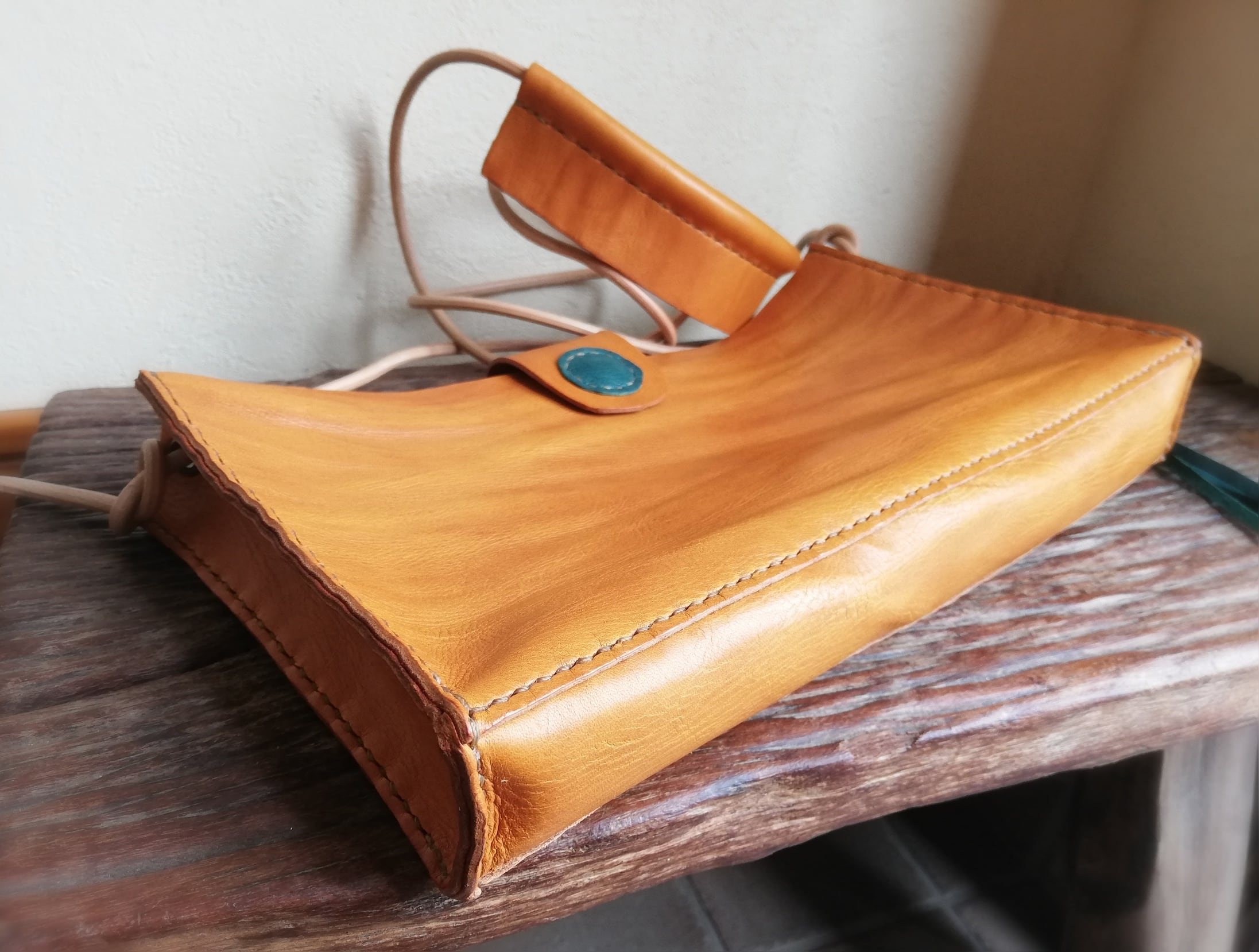 革紐の肩に当たる部分にあて革を付けましたので、肩への負担が軽減されます