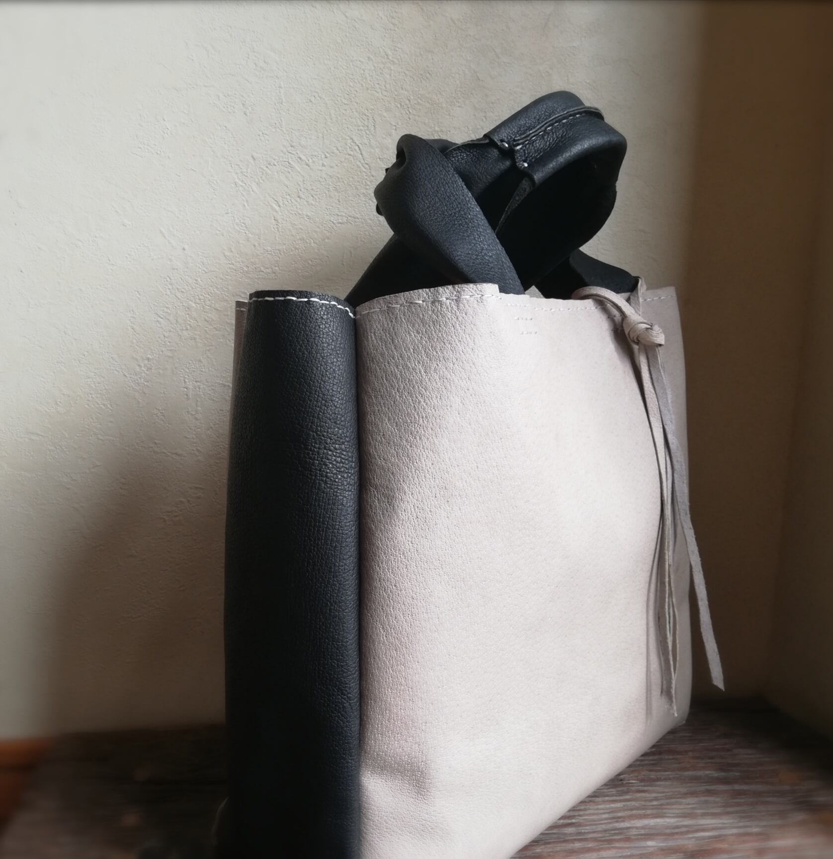stitch tote M ピッグスキン ライトグレー✗ブラック