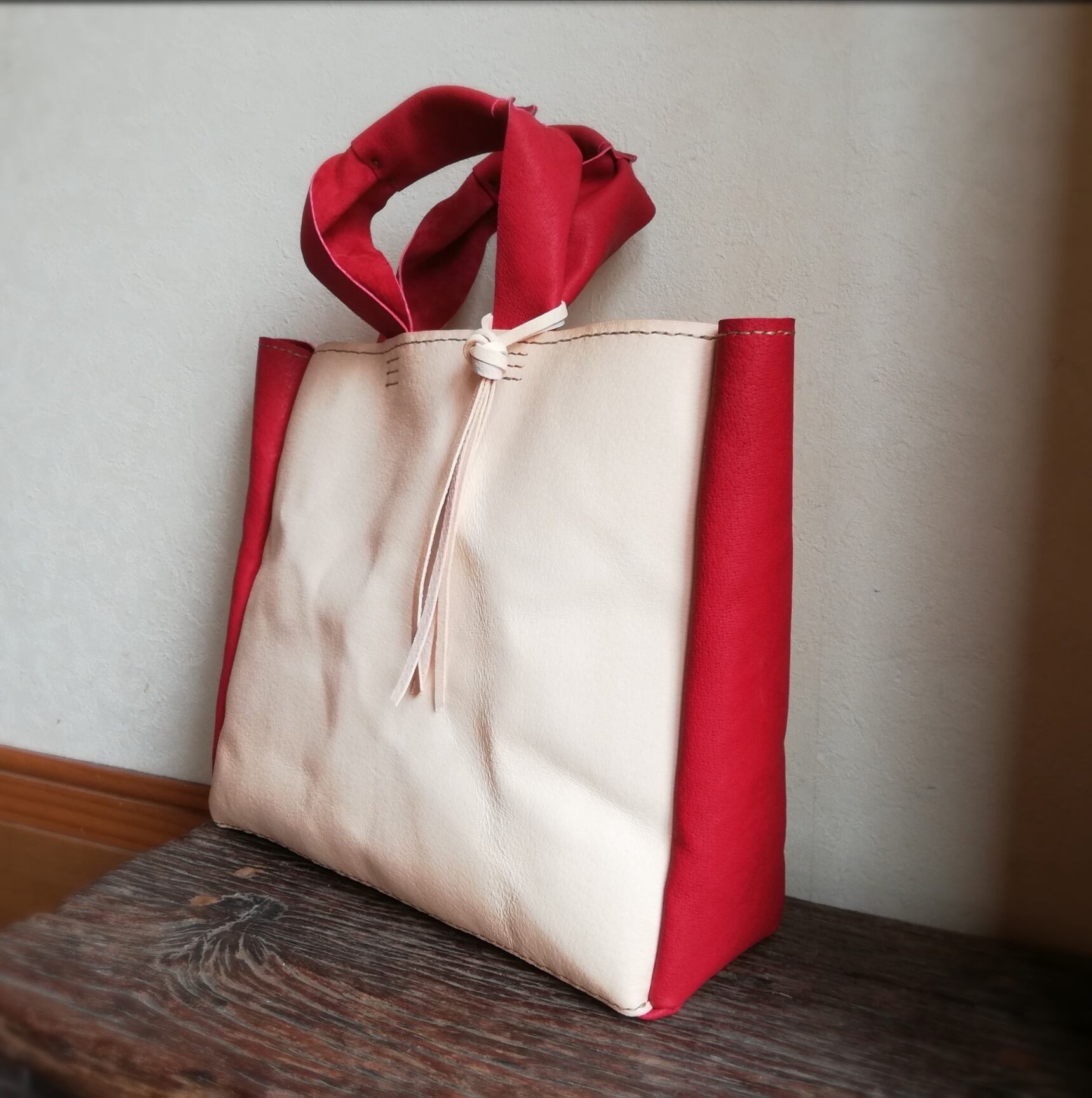 stitch tote M ピッグスキン ナチュラル✗レッド