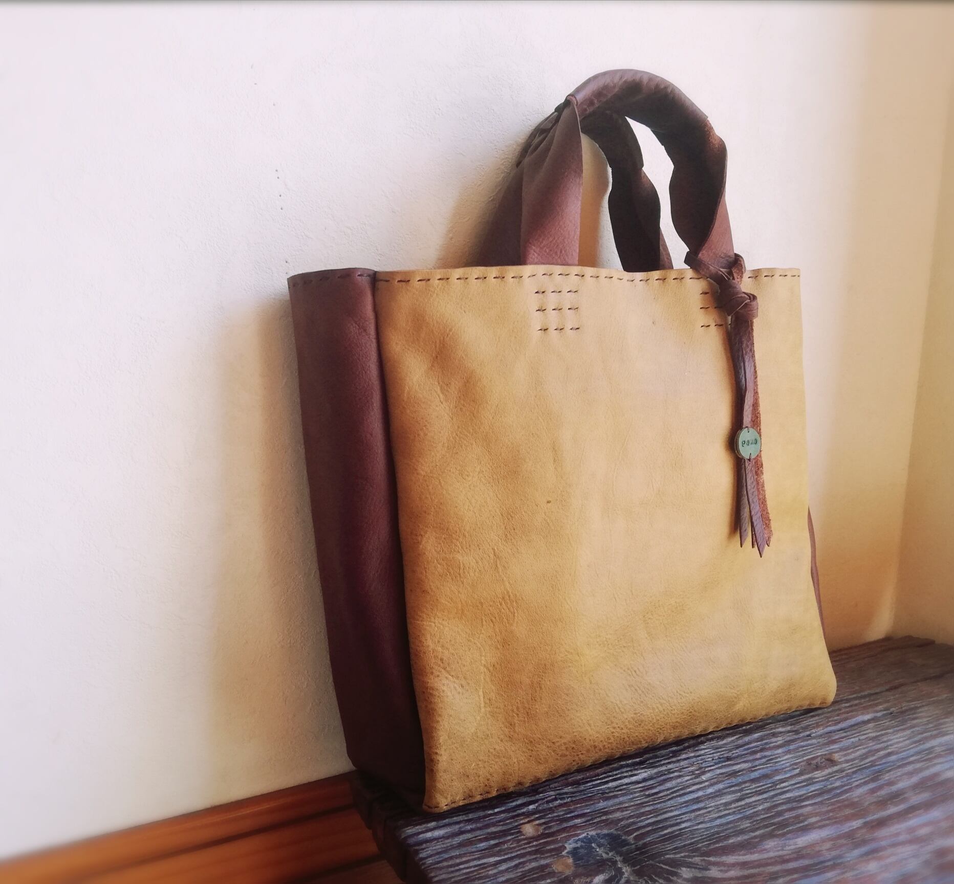 stitch tote M オイルシュリンクレザー マスタードイエロー✗チョコ