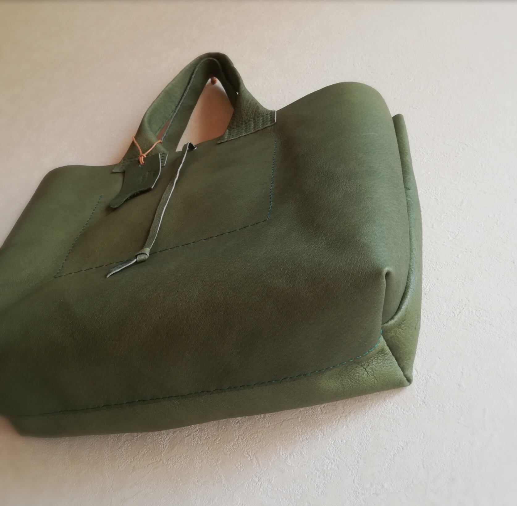 上品なモスグリーンは、どんなファッションにも合い、色々なシチュエーションで長く使っていただけるかと思います