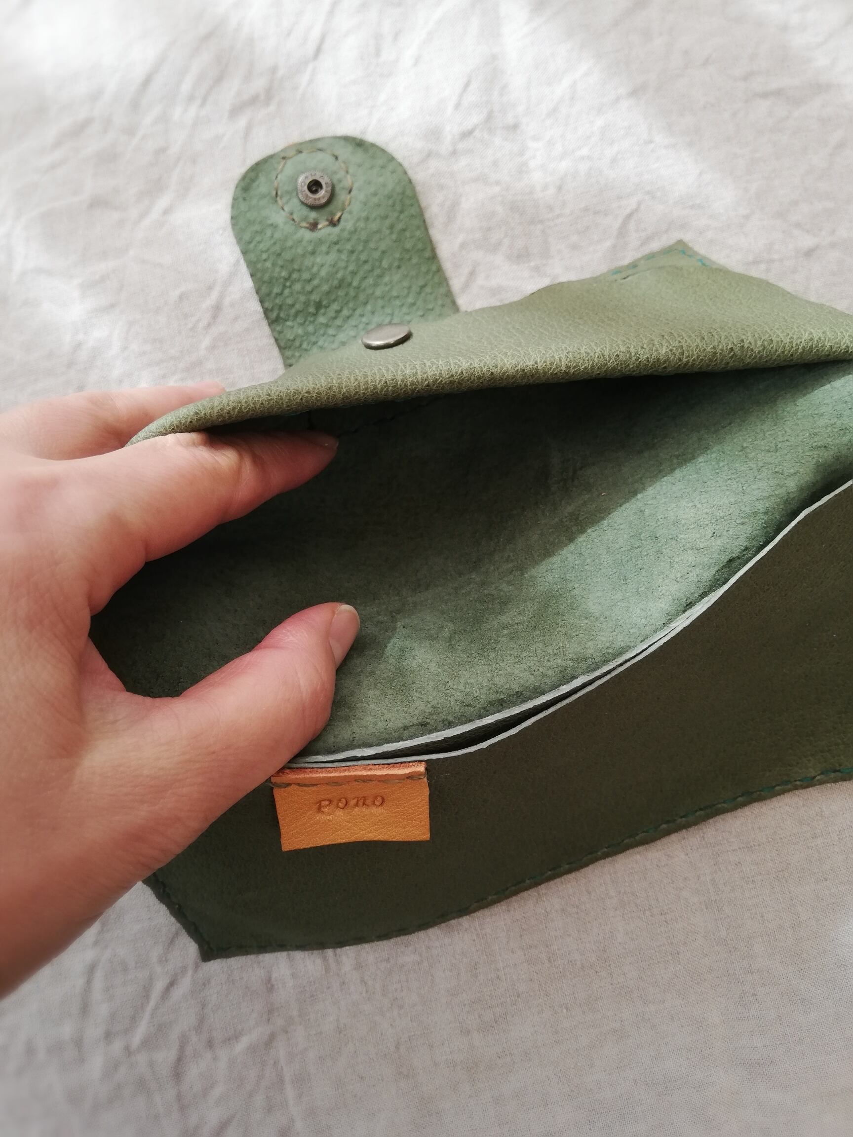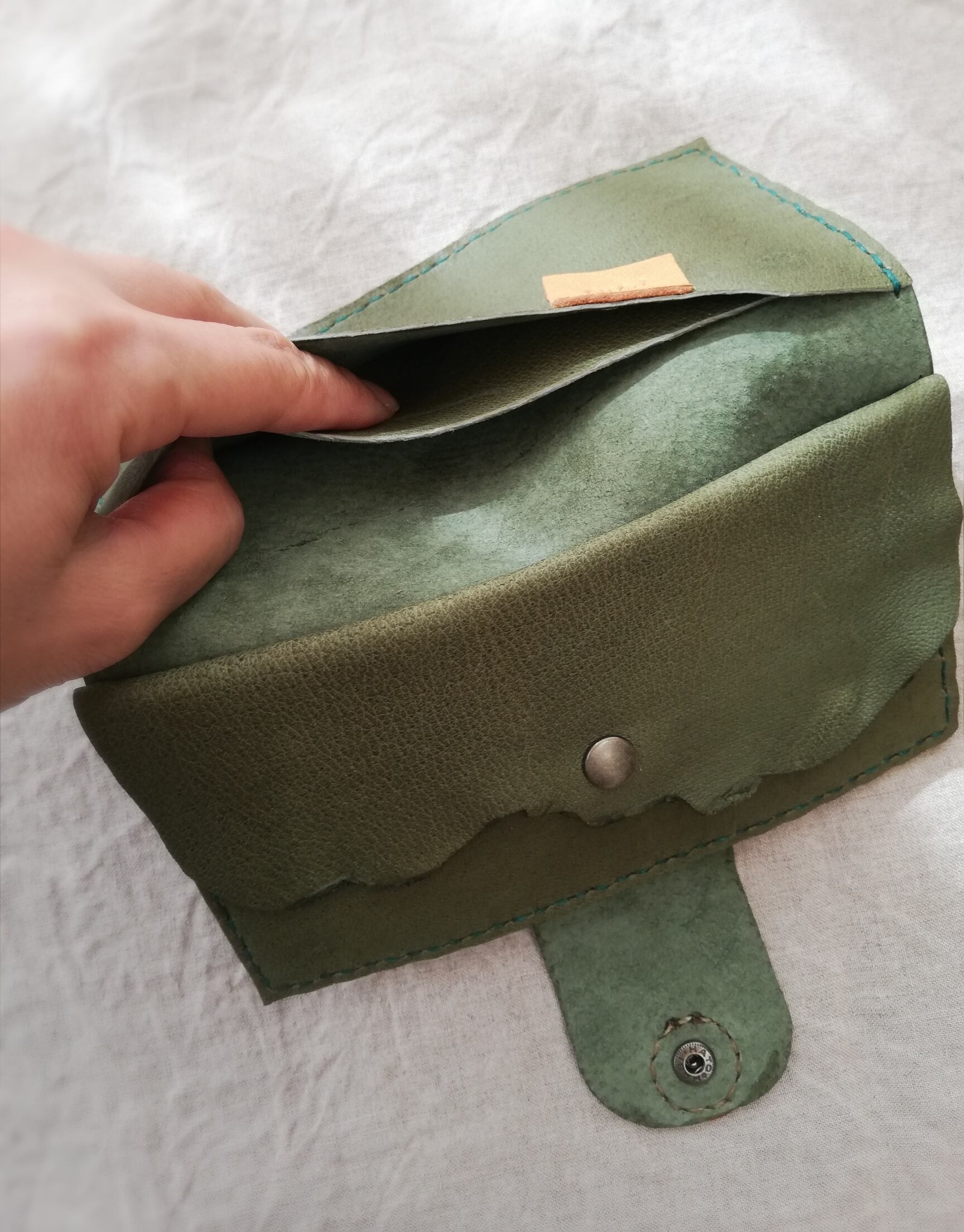 カード入れには仕切りとして取り外し可能な革を付けました