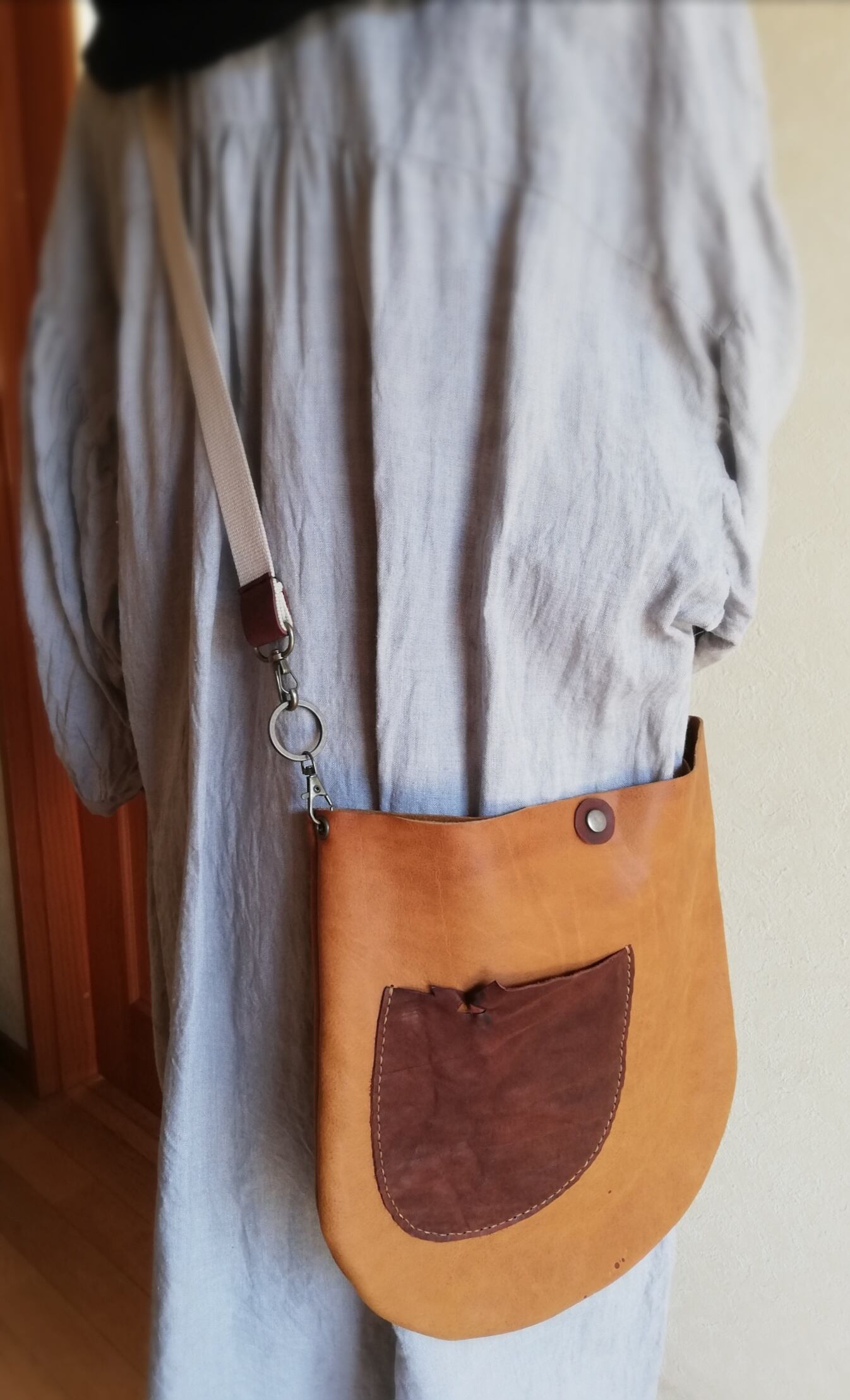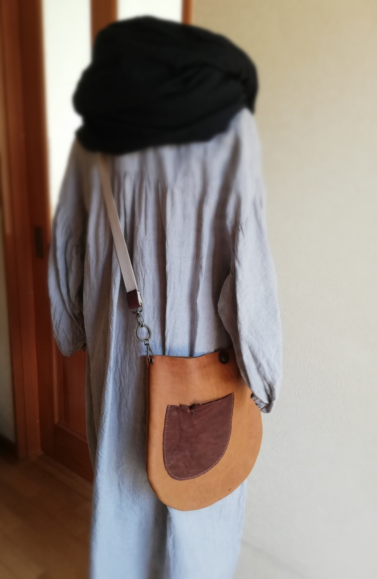 ブラウンのまぁるいぺたんこショルダーを作りました