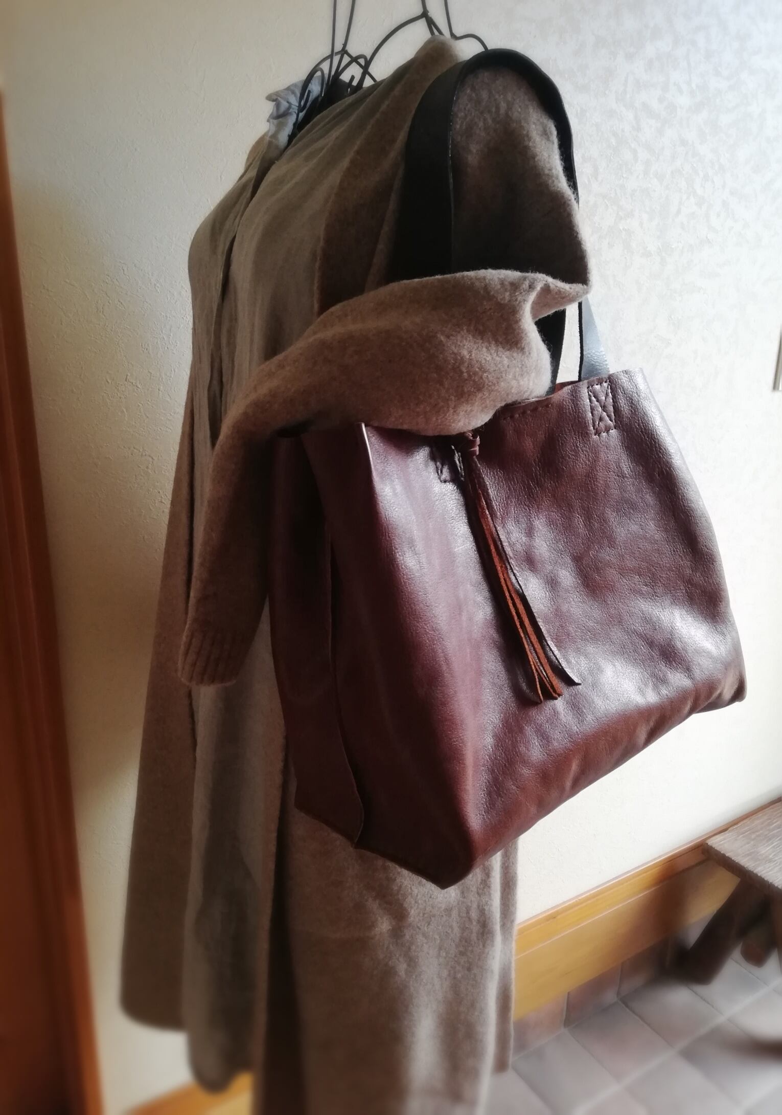 ざっくりtote L ブラウン オイルシュリンクレザー
