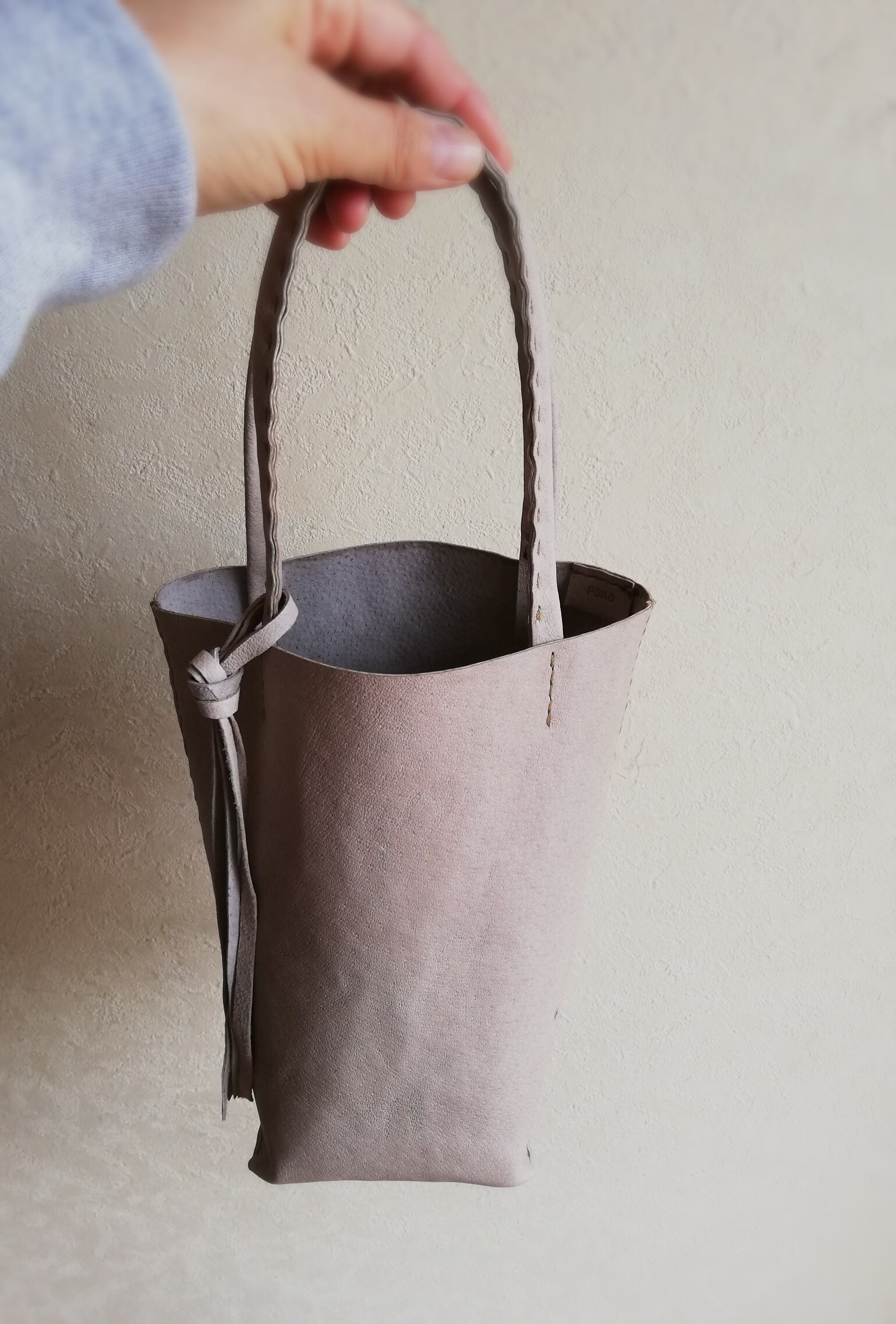 mini tote ピッグスキン ライトグレー