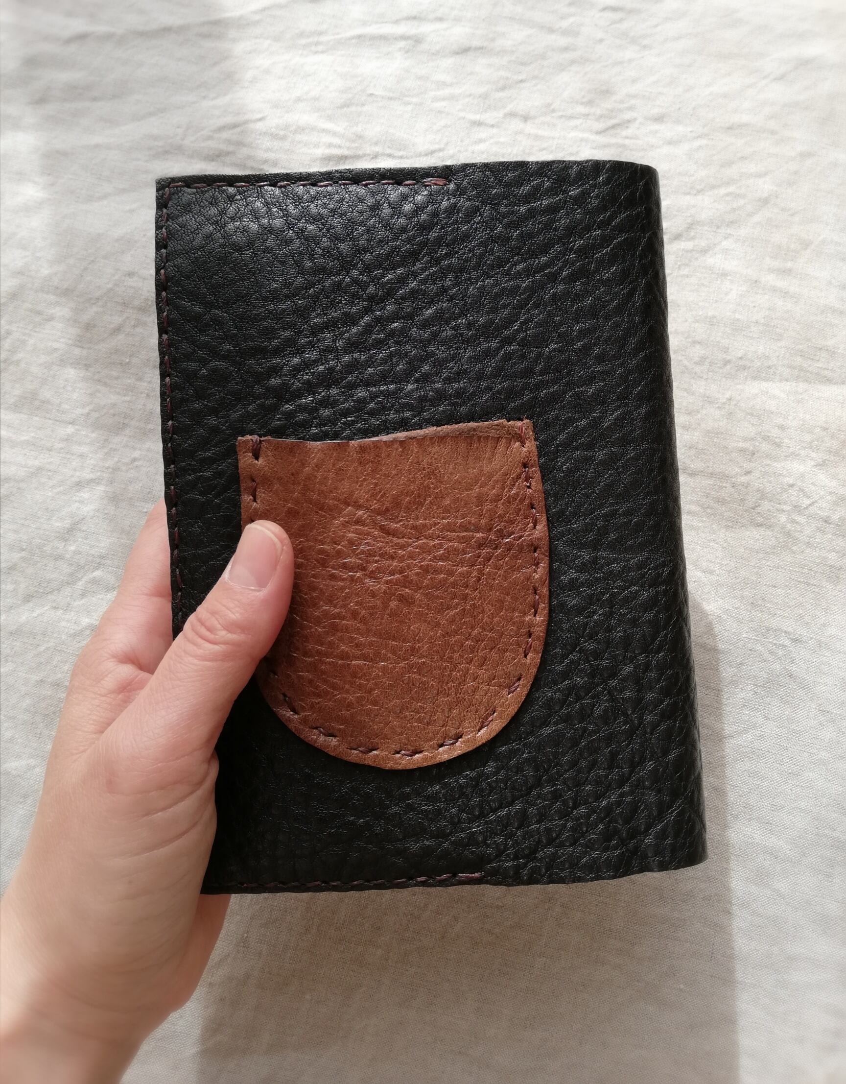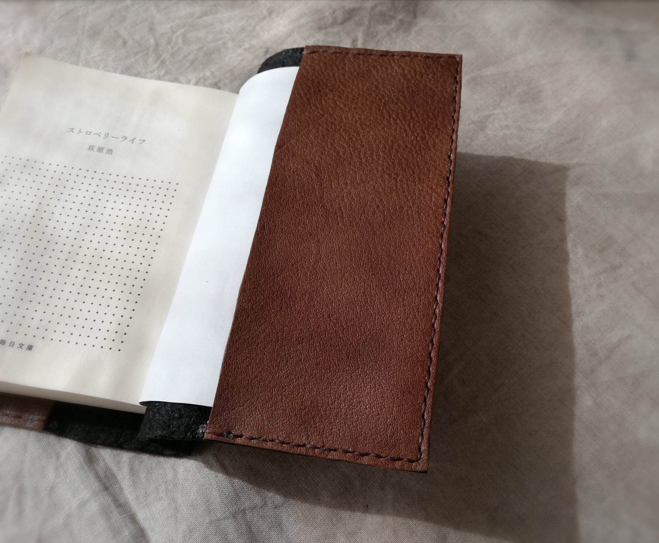 ブックカバー ブラック✗オークグレー オイルシュリンクレザー