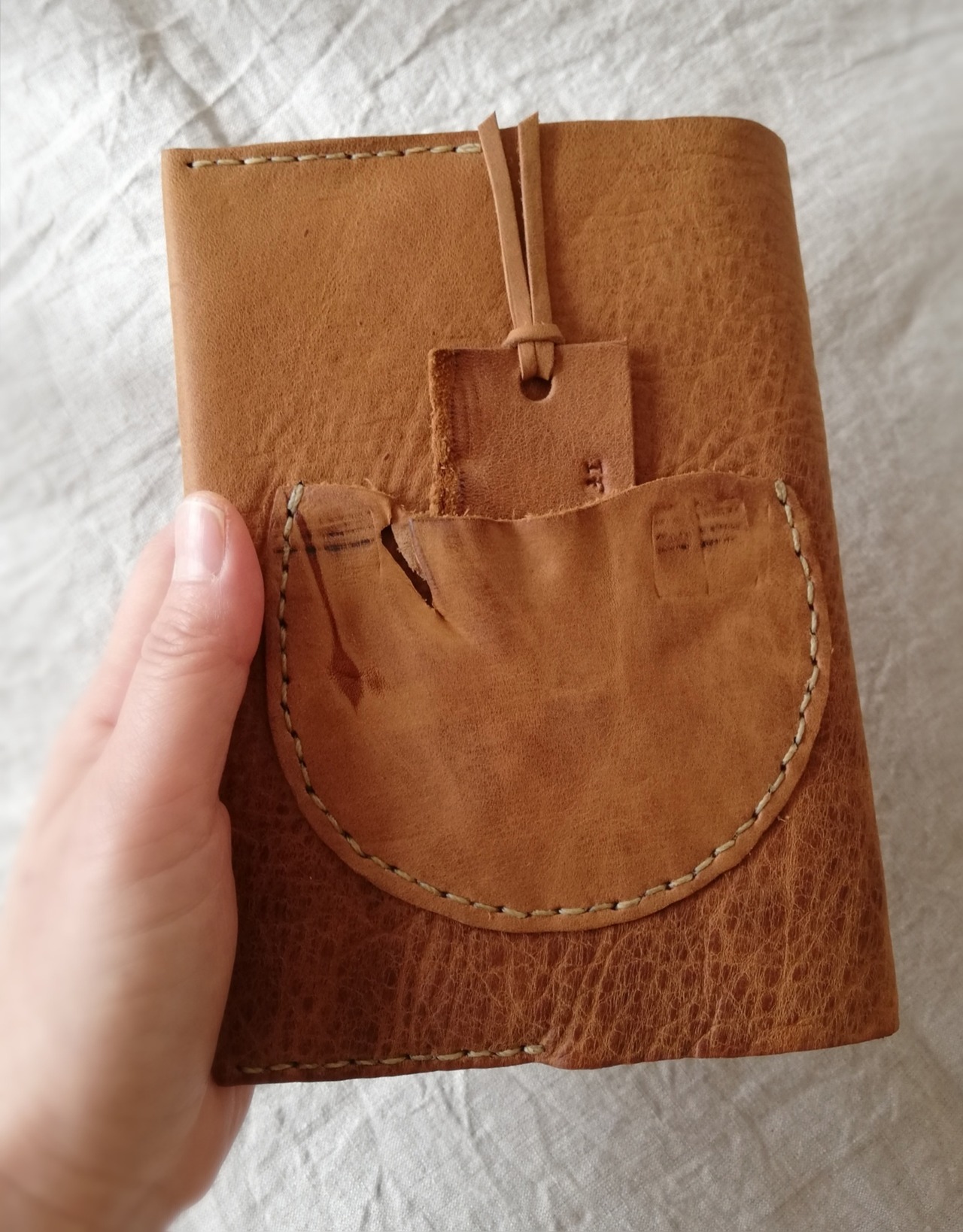 革はくったり柔らかく、植物性タンニンで鞣された牛革。
