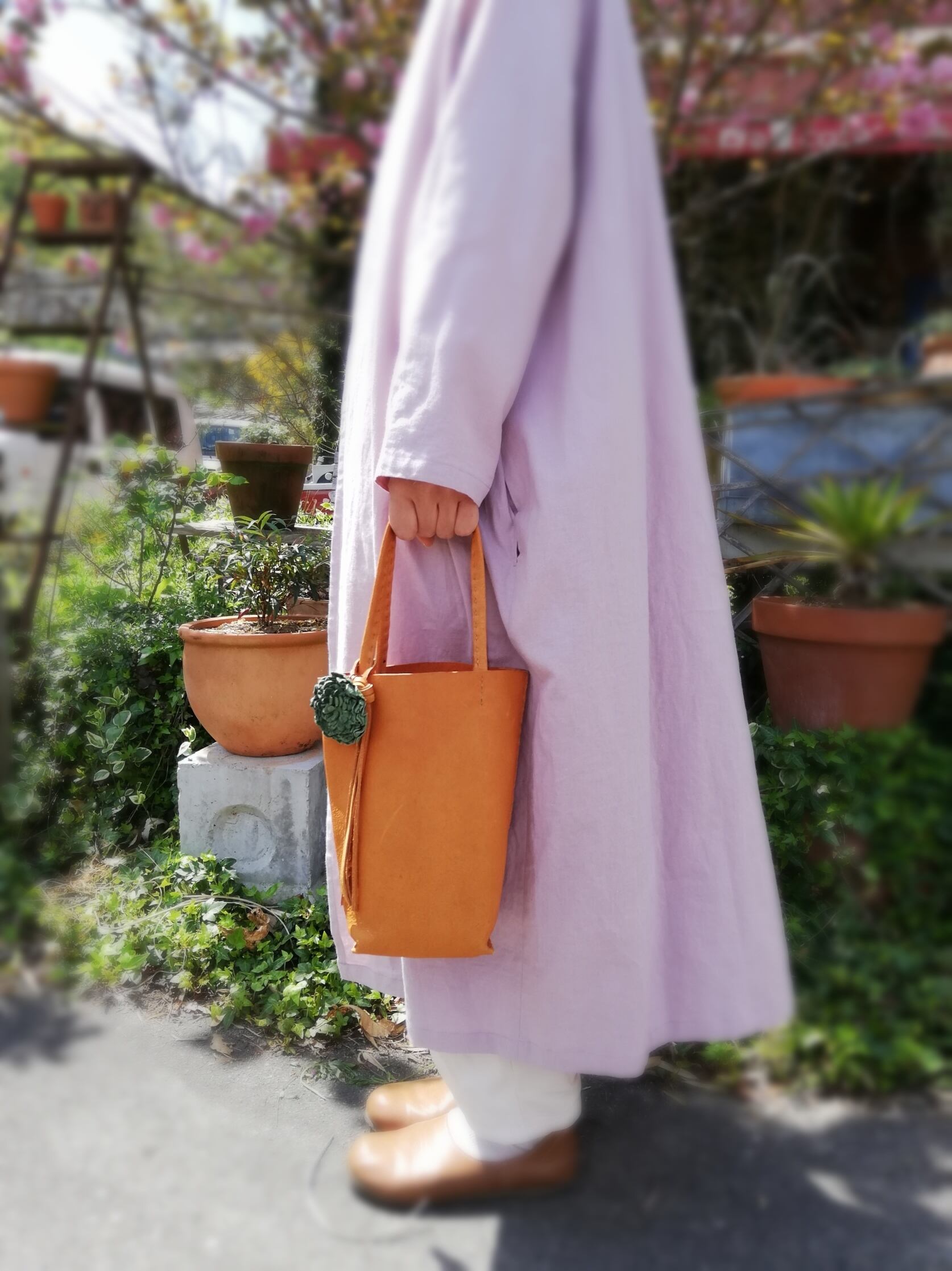 自然界から抽出したミモザアカシアなどから抽出される天然成分の植物タンニンを主原料とする、環境に『やさしい革』、ピッグレザーを使っています