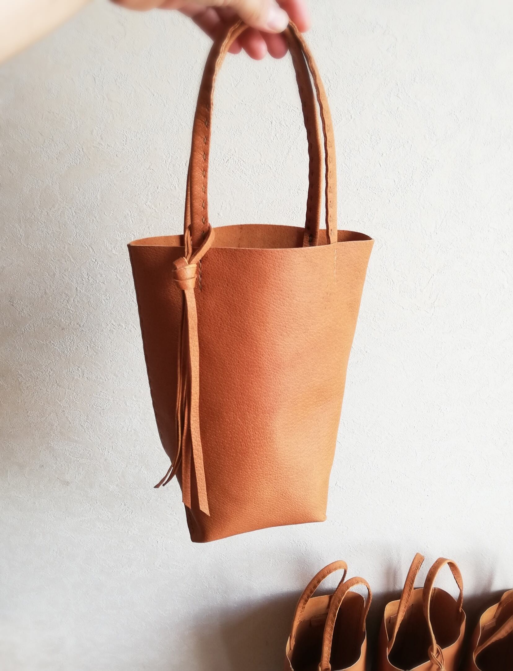 【受注制作】mini tote キャメル レッド ピッグスキンレザー