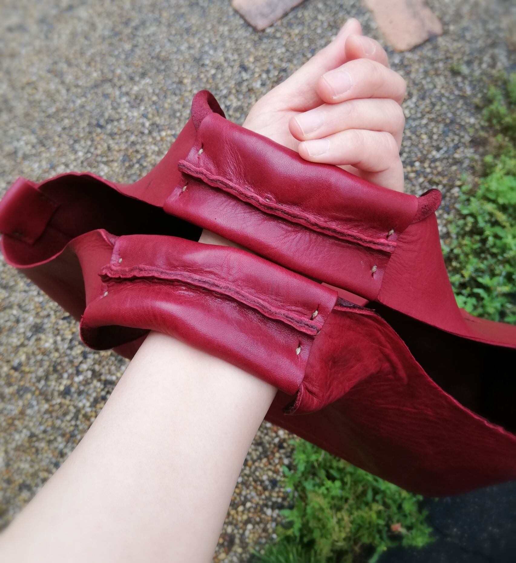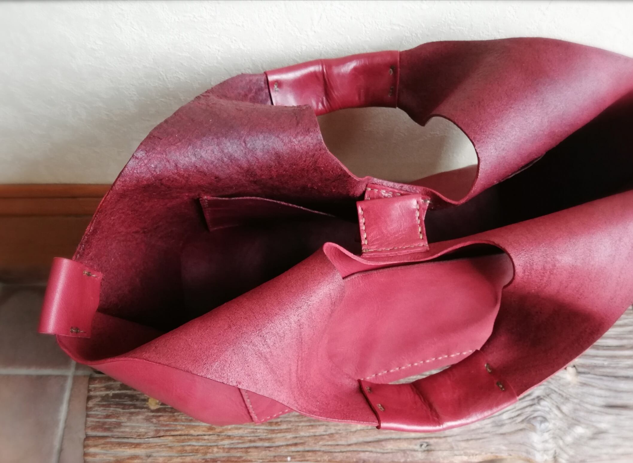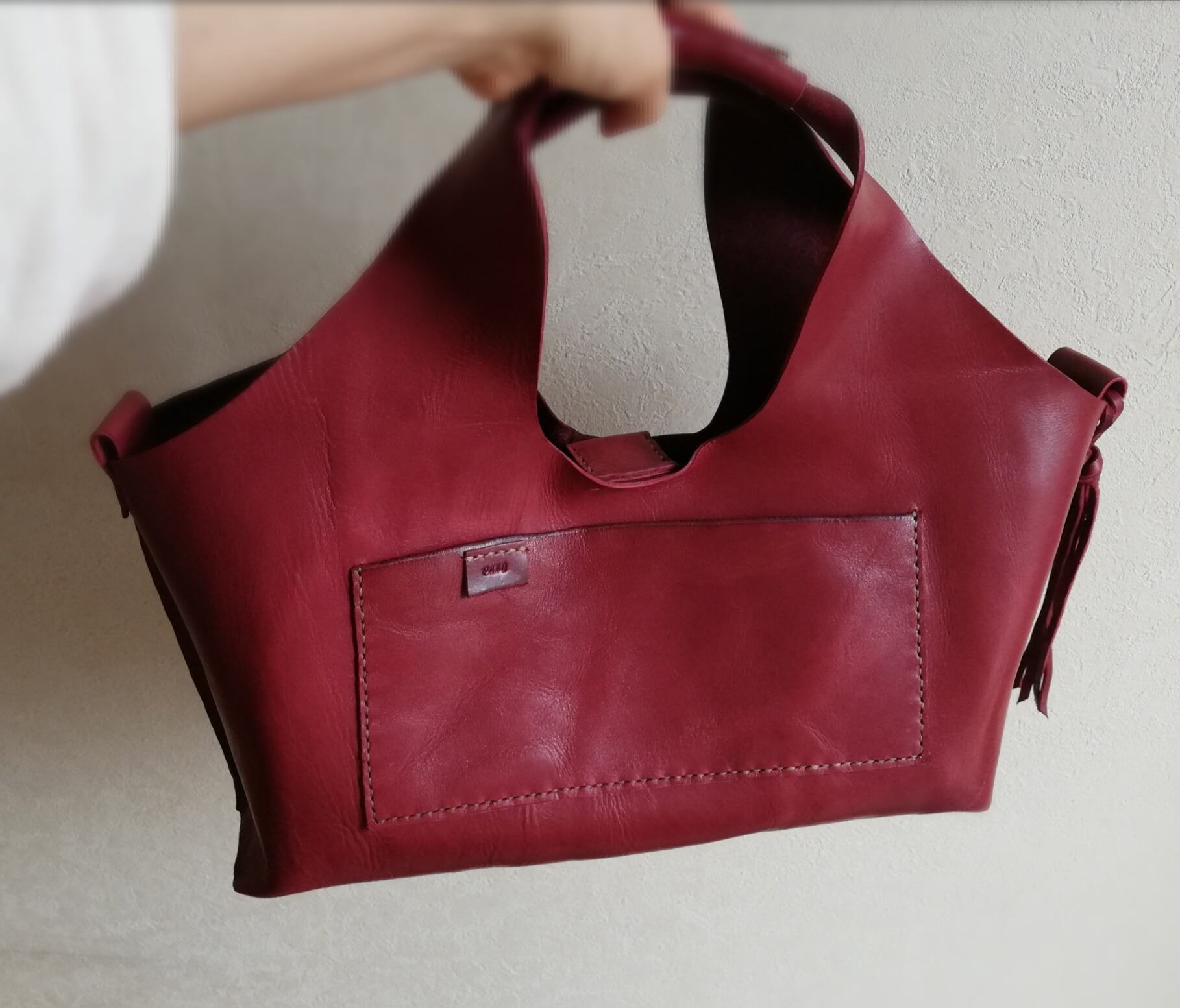 革は、1枚1枚ほぼ手絞りによるランダムなヴィンテージ感のあるシワがあり、オイル効果により、伸縮性に富み、耐久性の高い牛革です