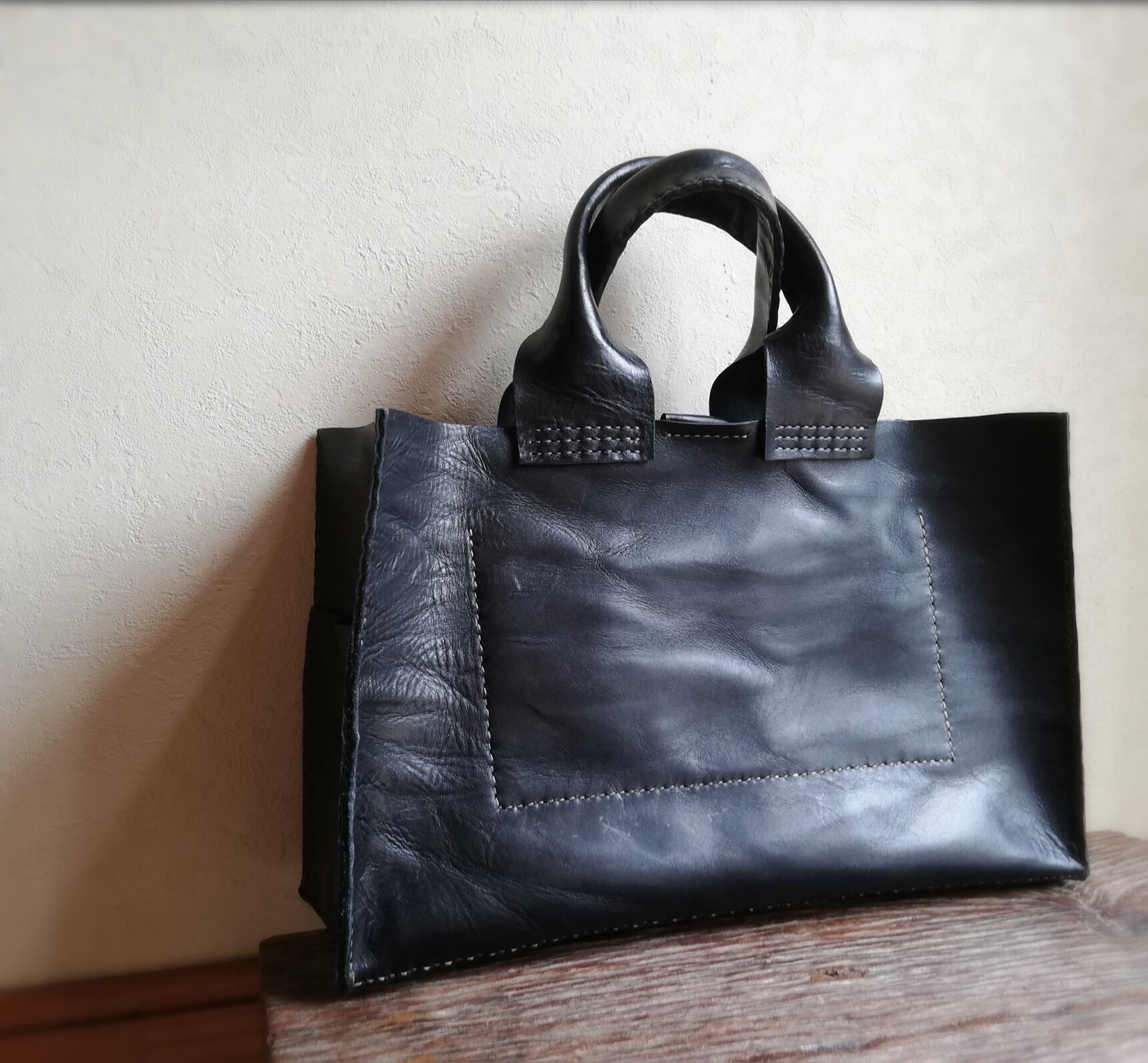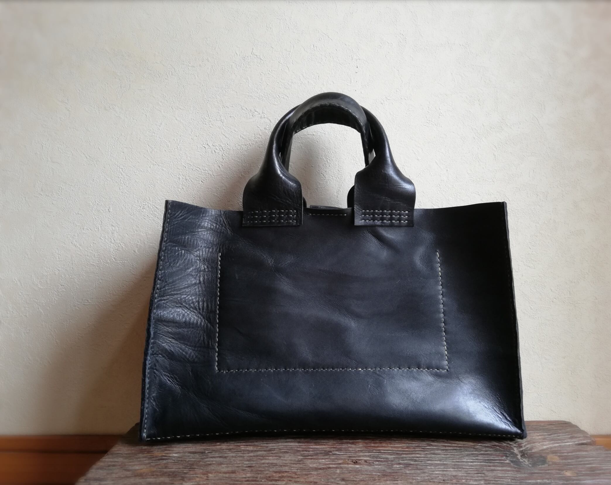 【オーダー品】square tote M 横長 ブラック オイルワックスレザー