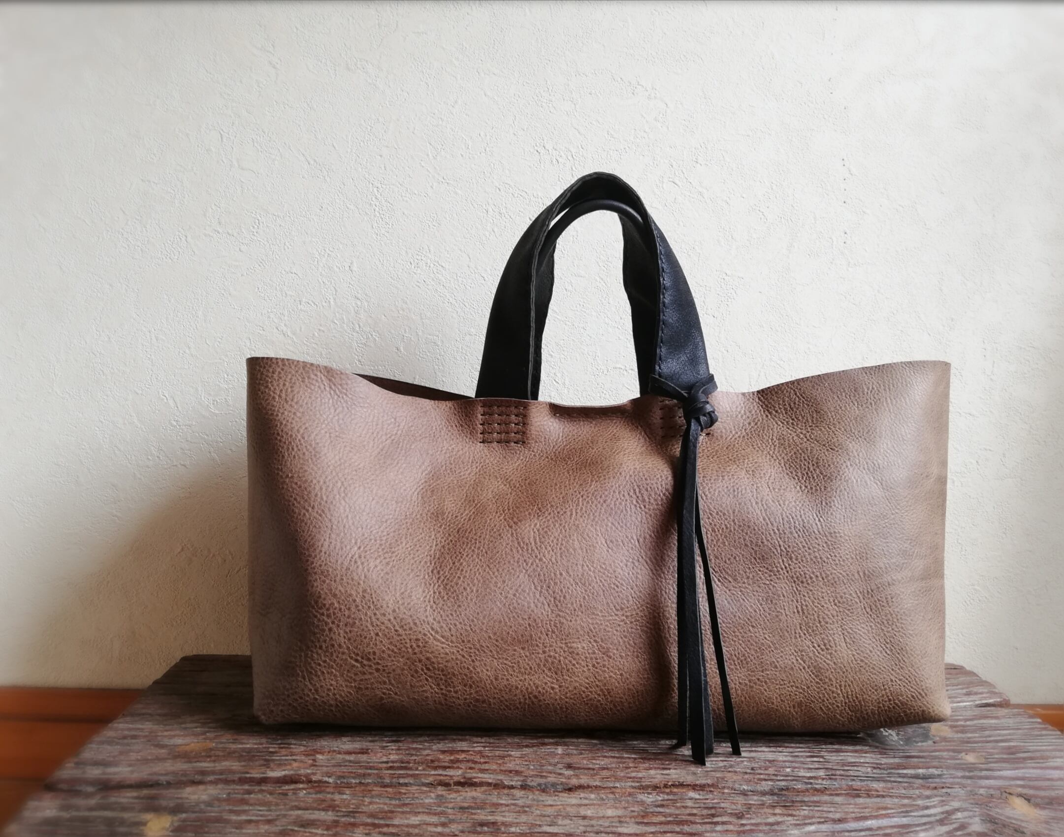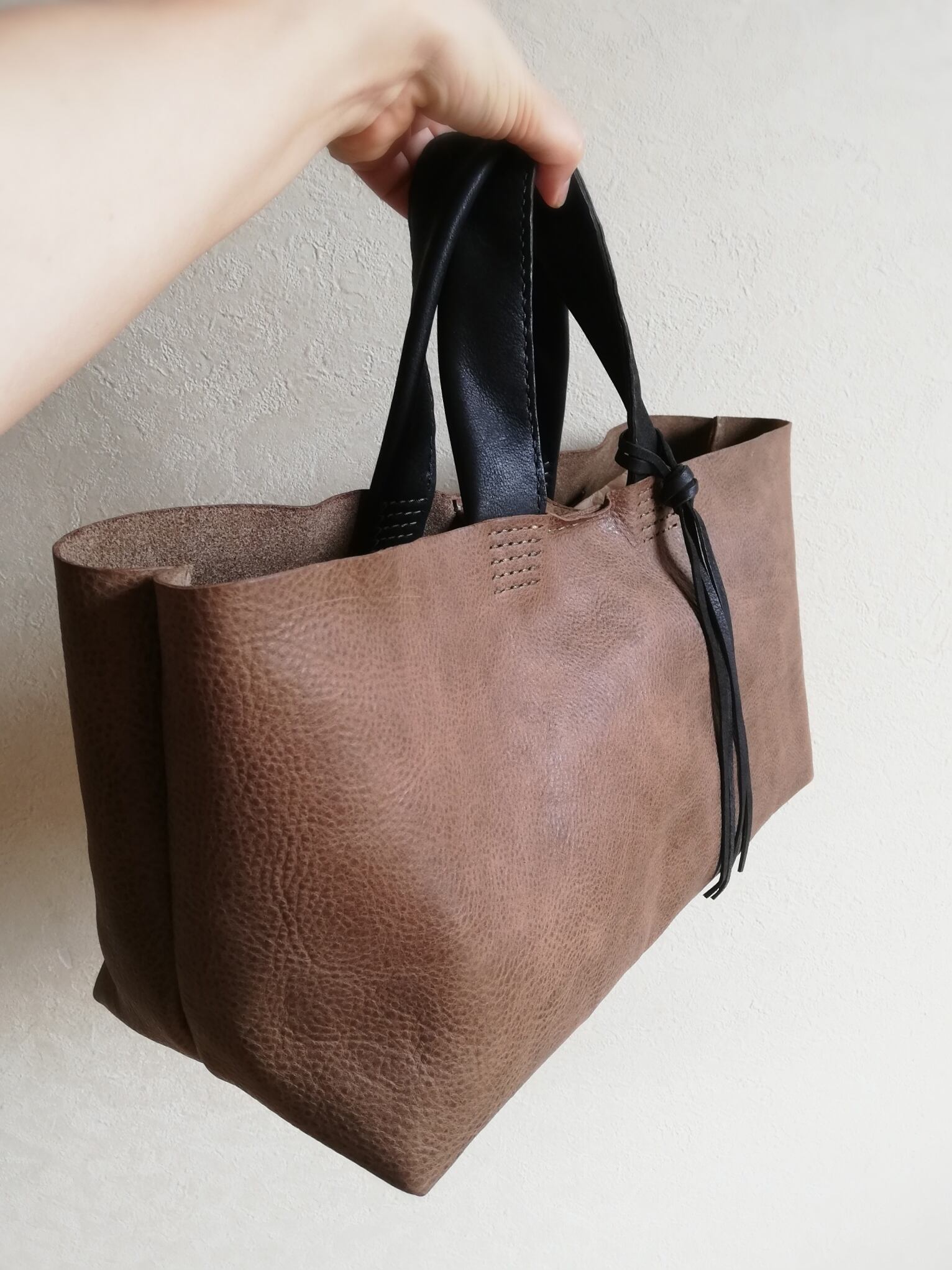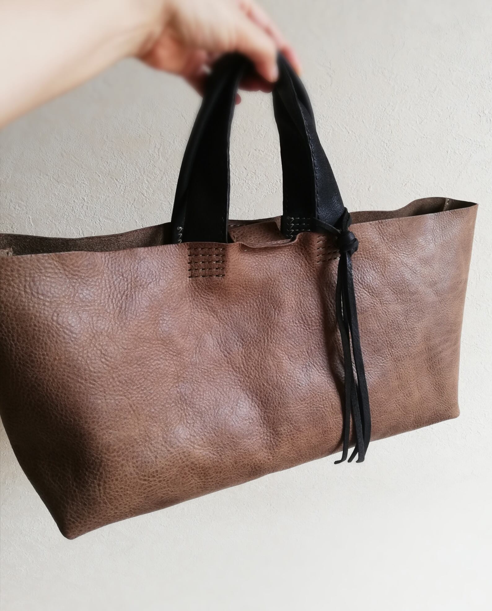yokonaga tote グレー✗ブラック オイルシュリンクレザー