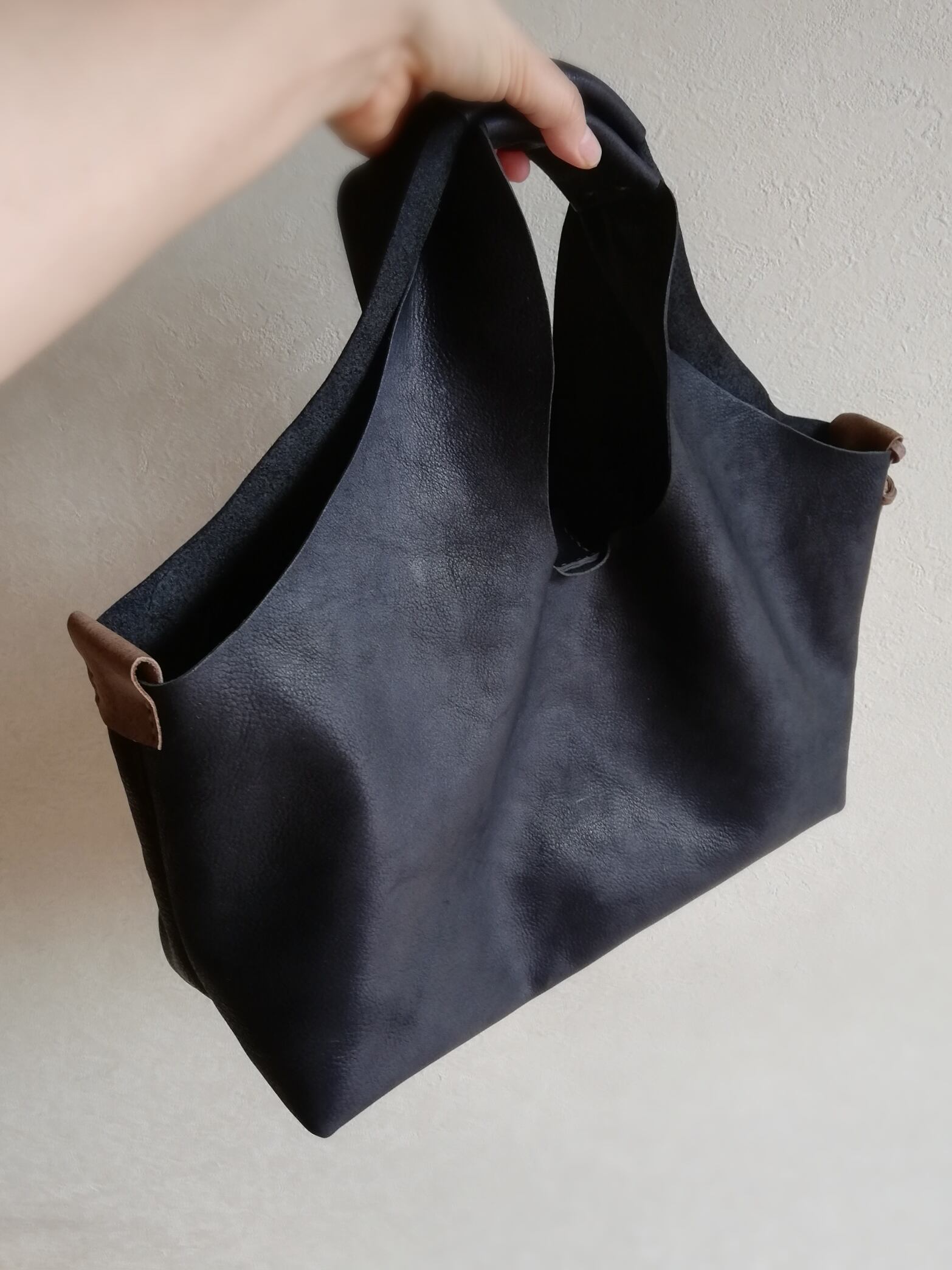 BASKET tote ブラック✗グレー オイルシュリンクレザー