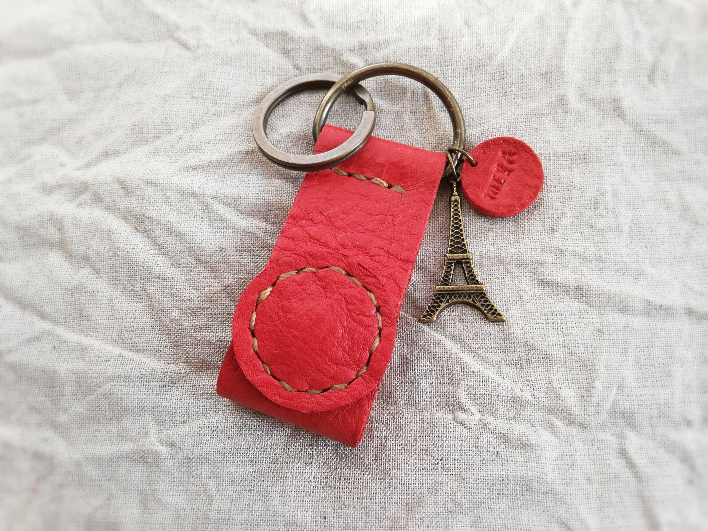 【オーダー品】キーホルダー レッド 牛ヌメ革