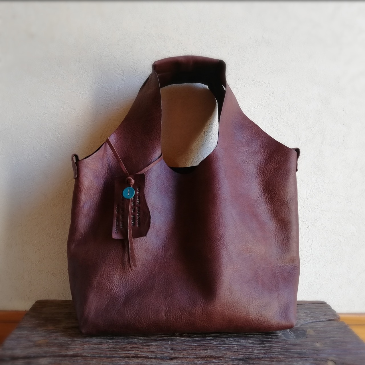 くったり柔らかく、植物性タンニンで鞣されたオイルシュリンクレザーで、とても軽いのが特徴です