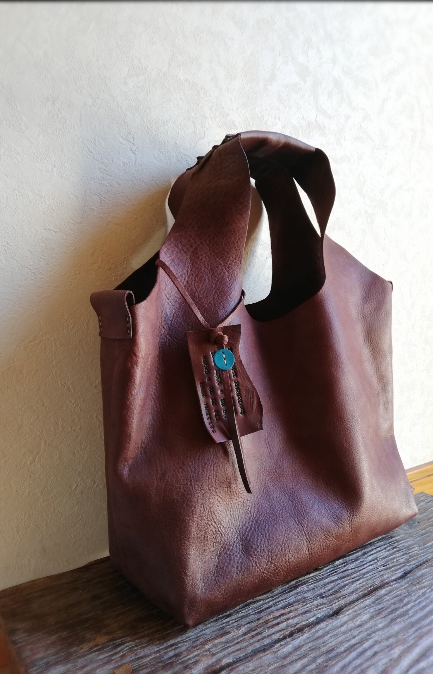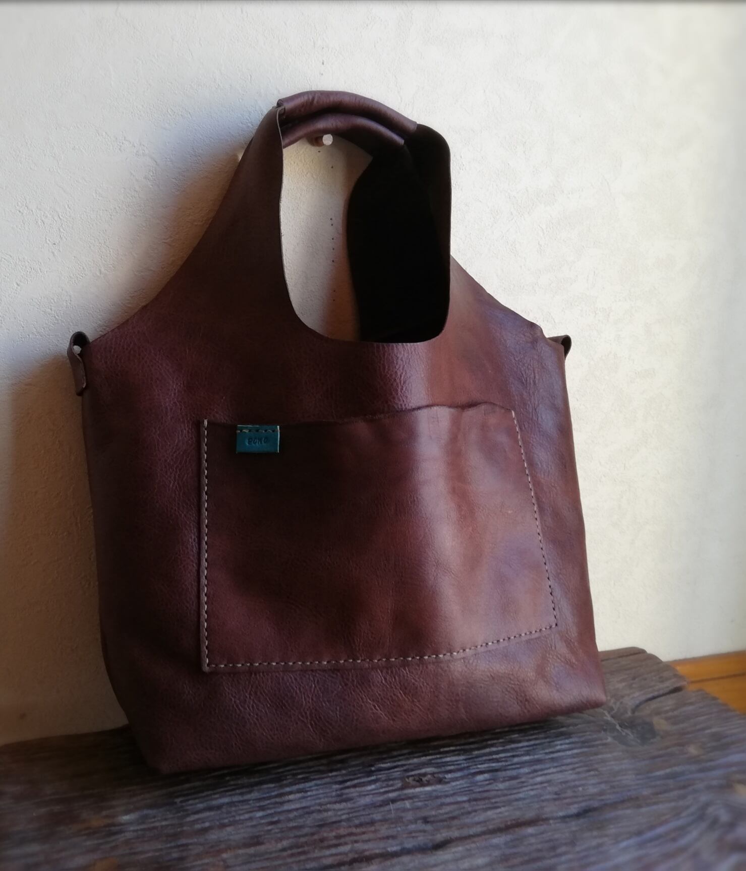 【オーダー品】simple tote 持ち手一体型 ダークブラウン オイルシュリンクレザー
