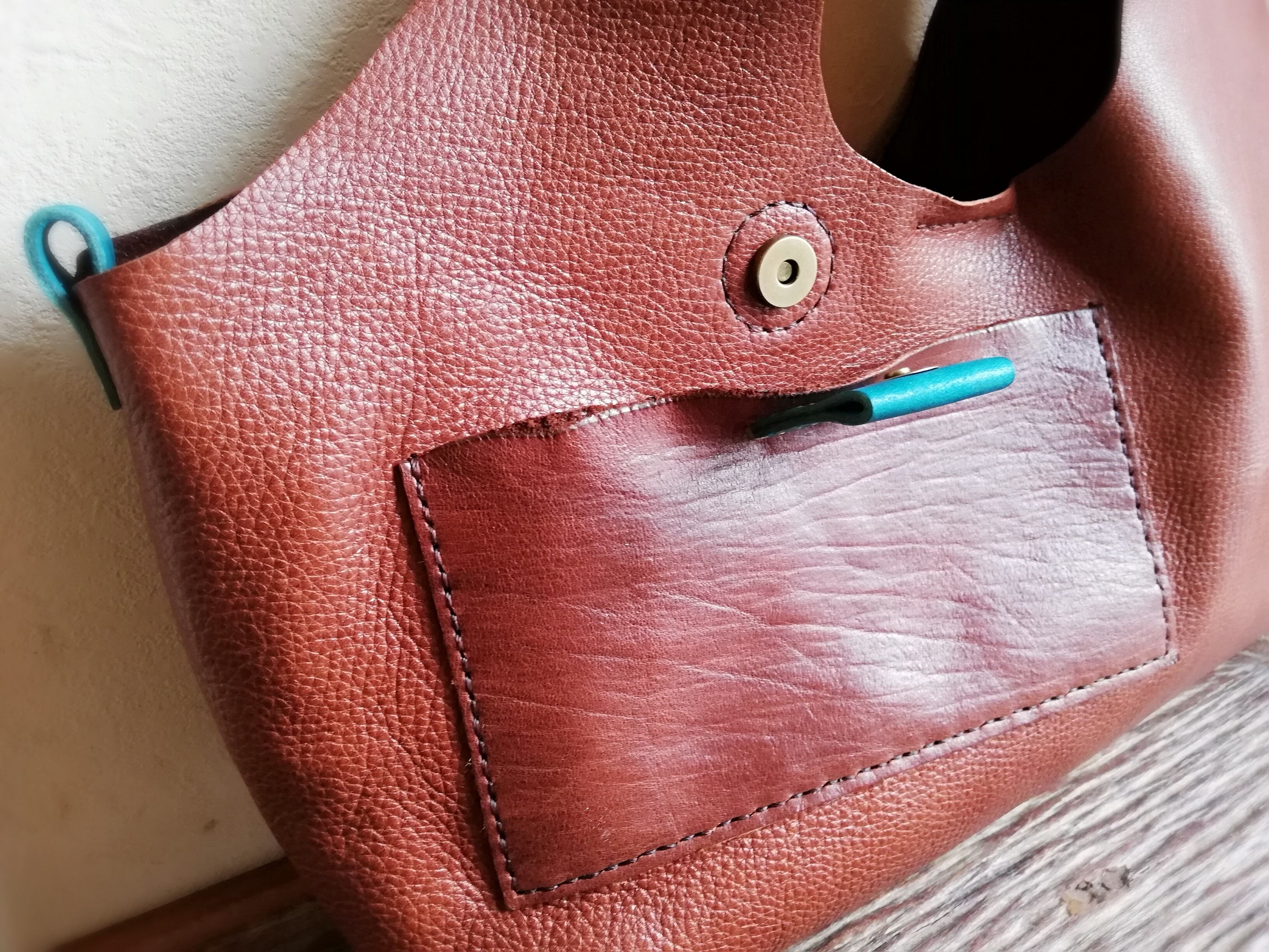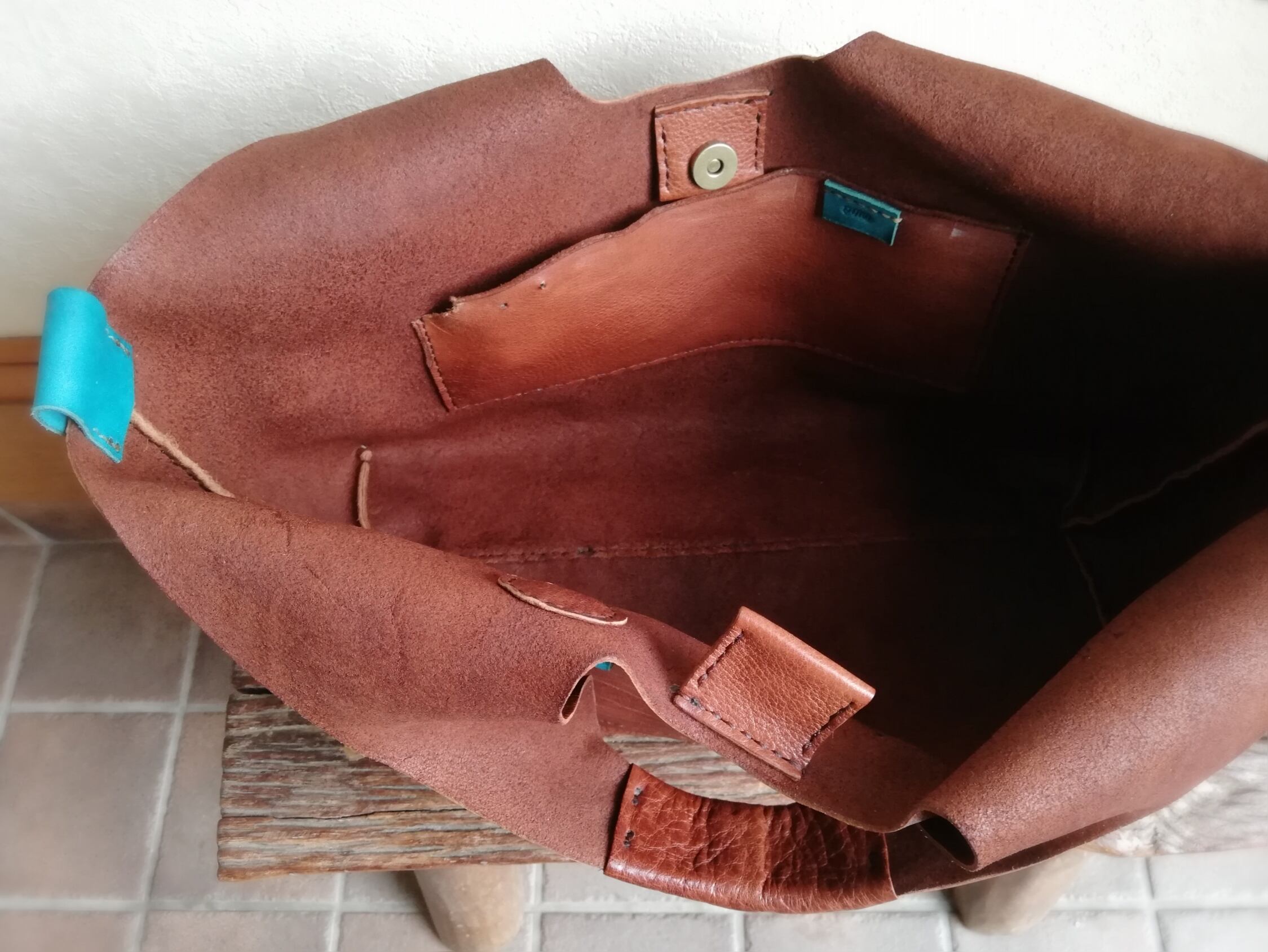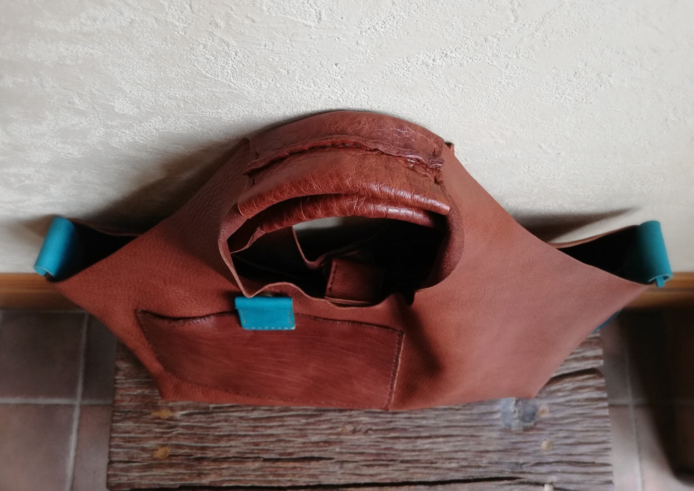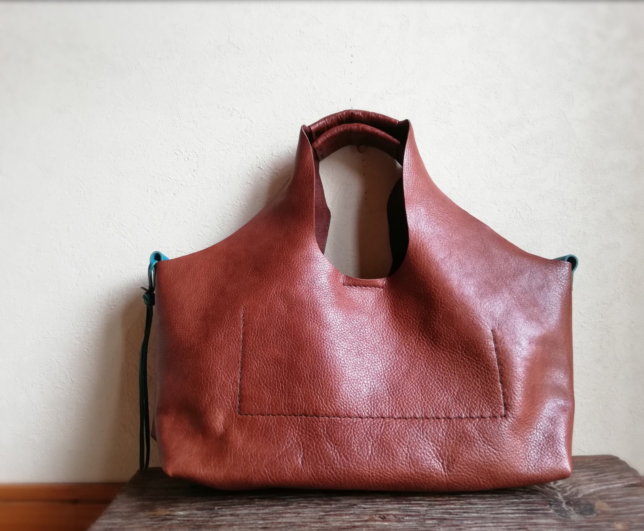 BASKET tote 濃いブラウン✗セルリアンブルー オイルシュリンクレザー