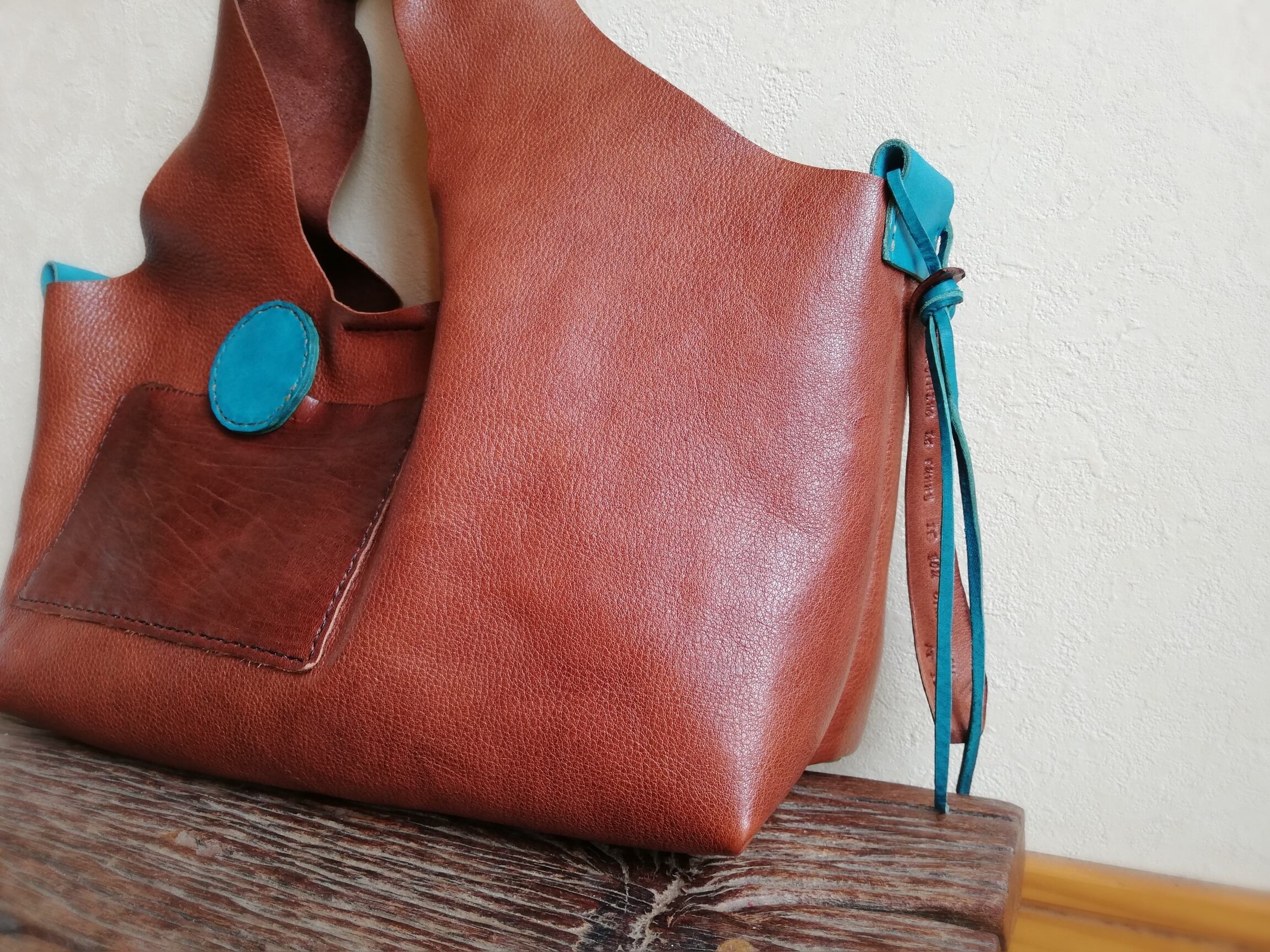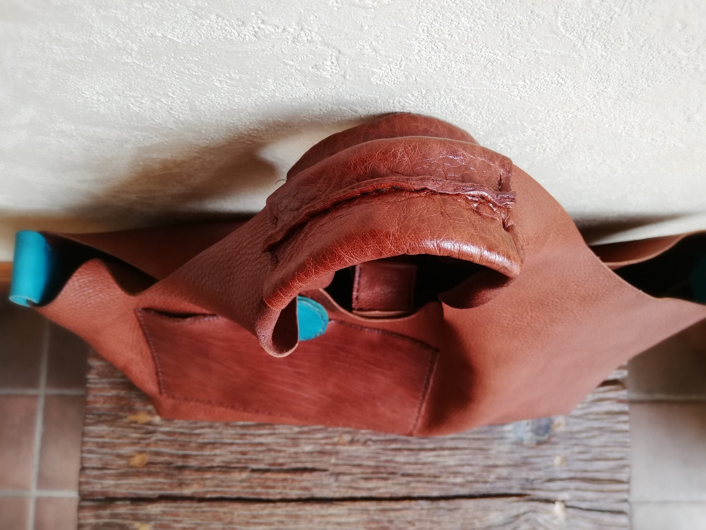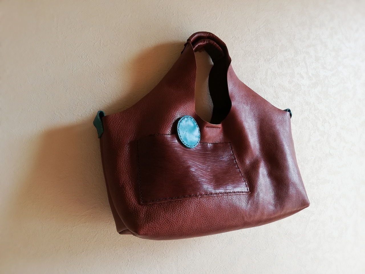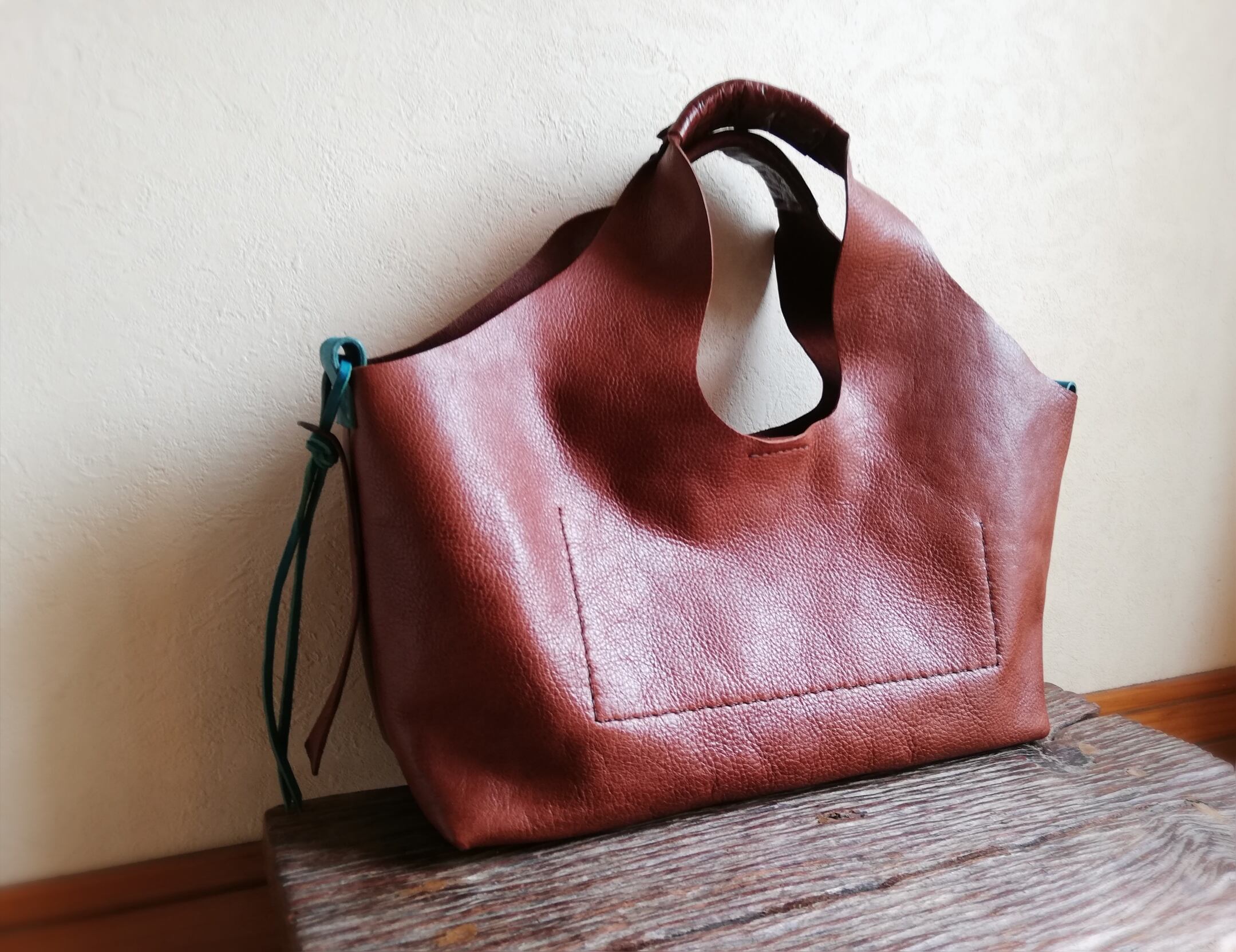 BASKET tote ブラウン✗セルリアンブルー オイルシュリンクレザー