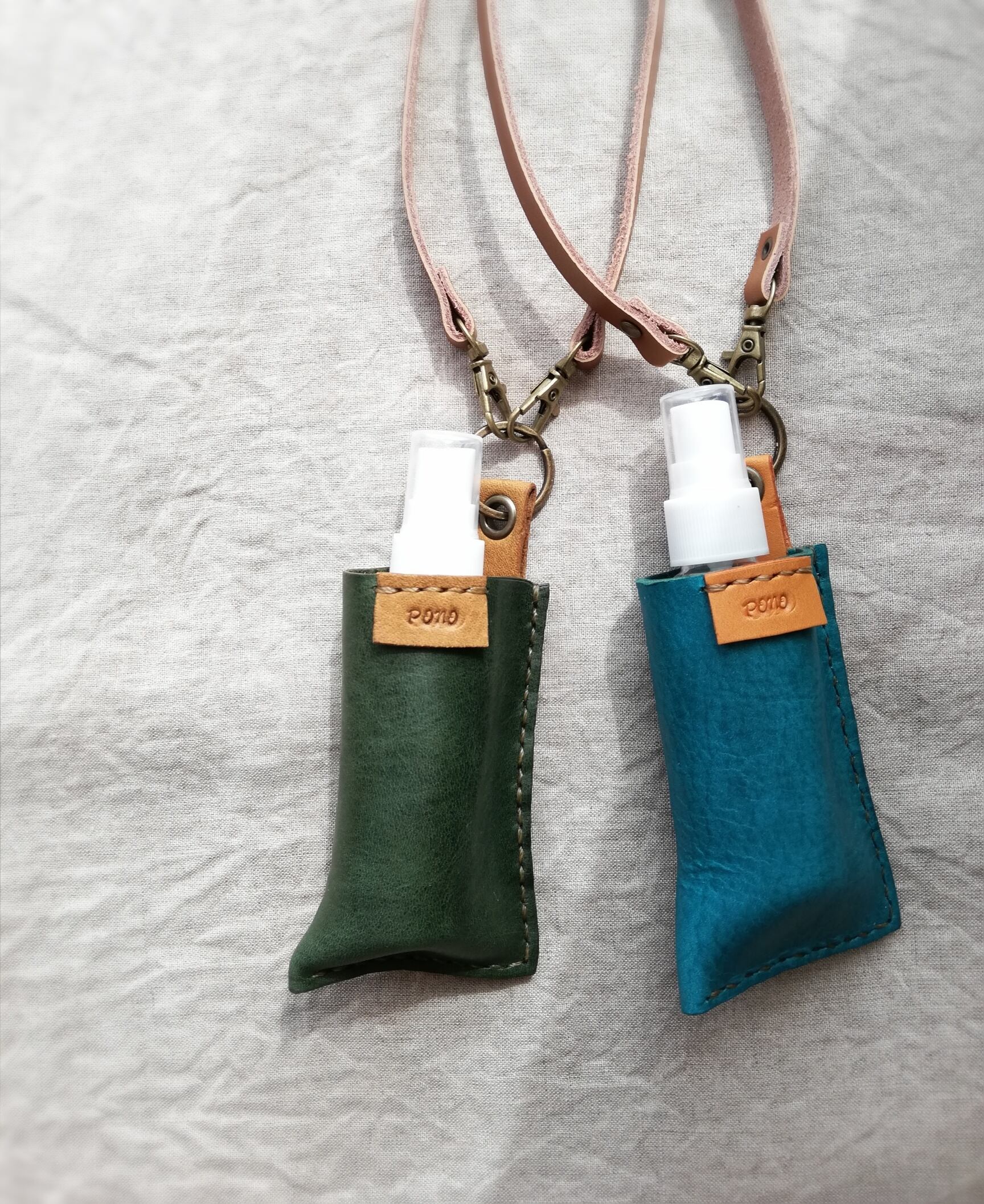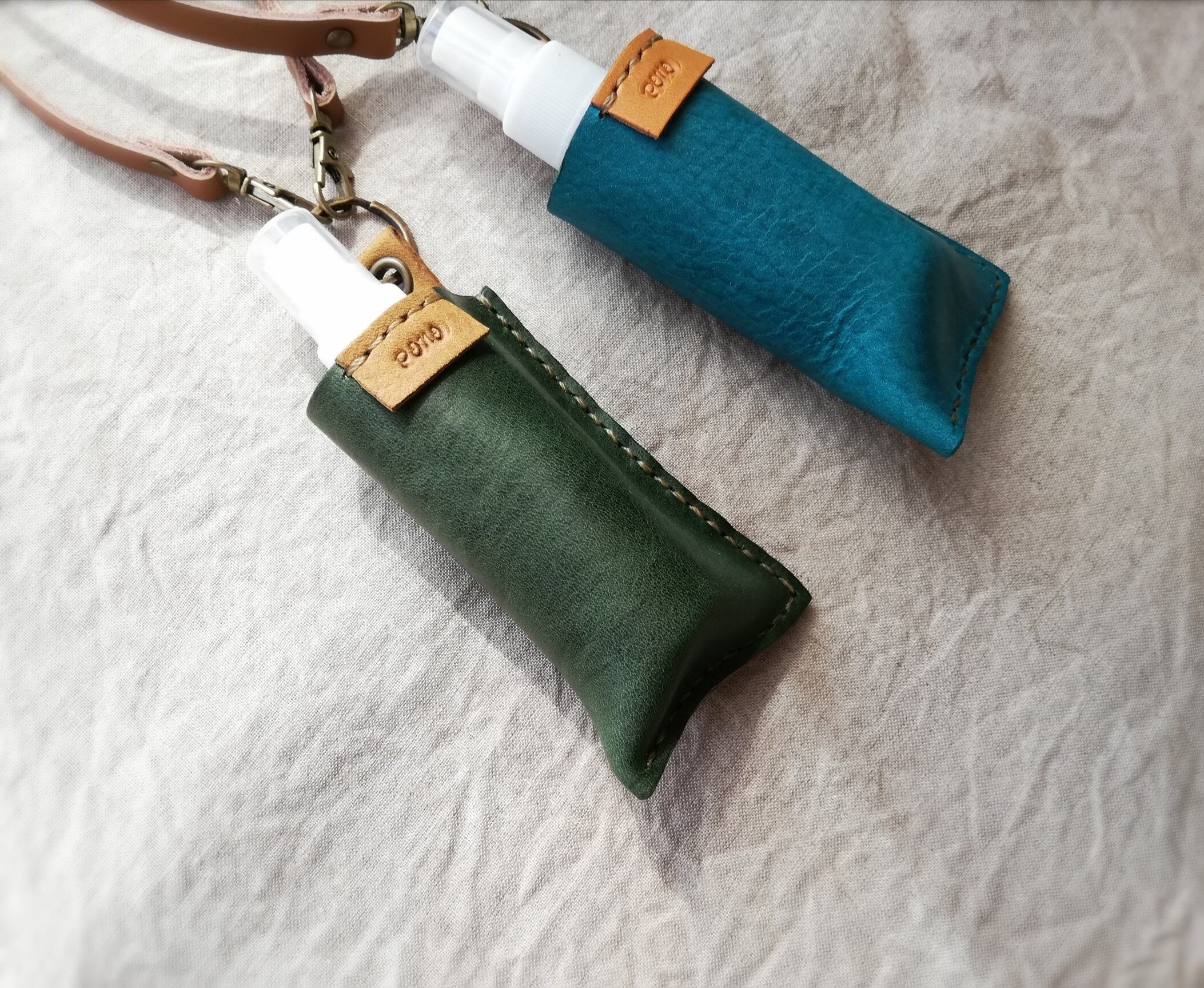 【オーダー品】消毒液スプレーボトルホルダー 2点セット セルリアンブルー グリーン オイルヌメ オイルシュリンクレザー