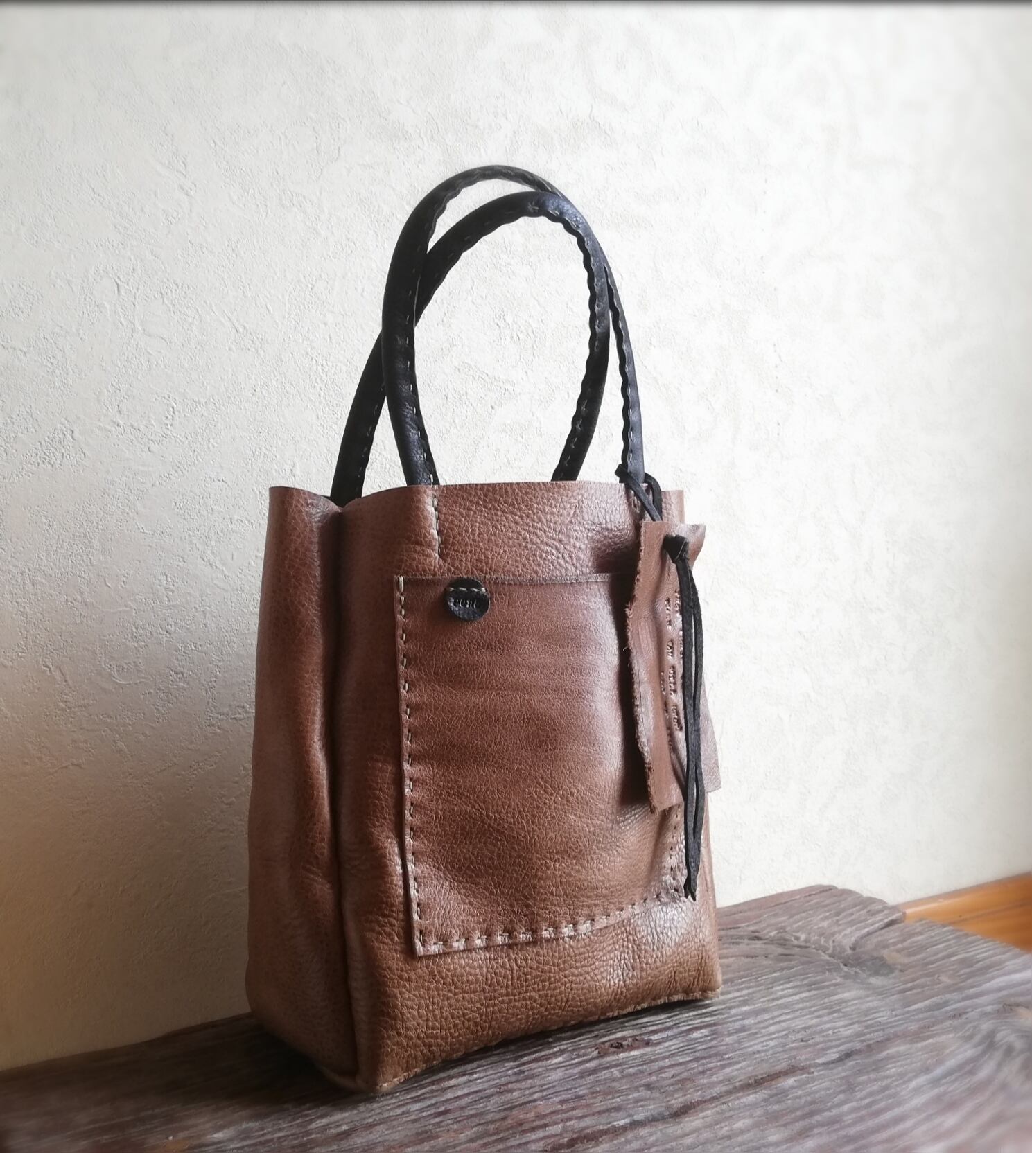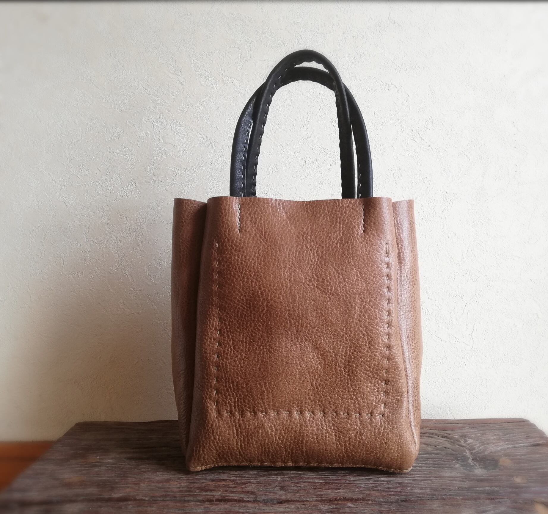 square mini tote オークグレー✗ブラック オイルシュリンクレザー