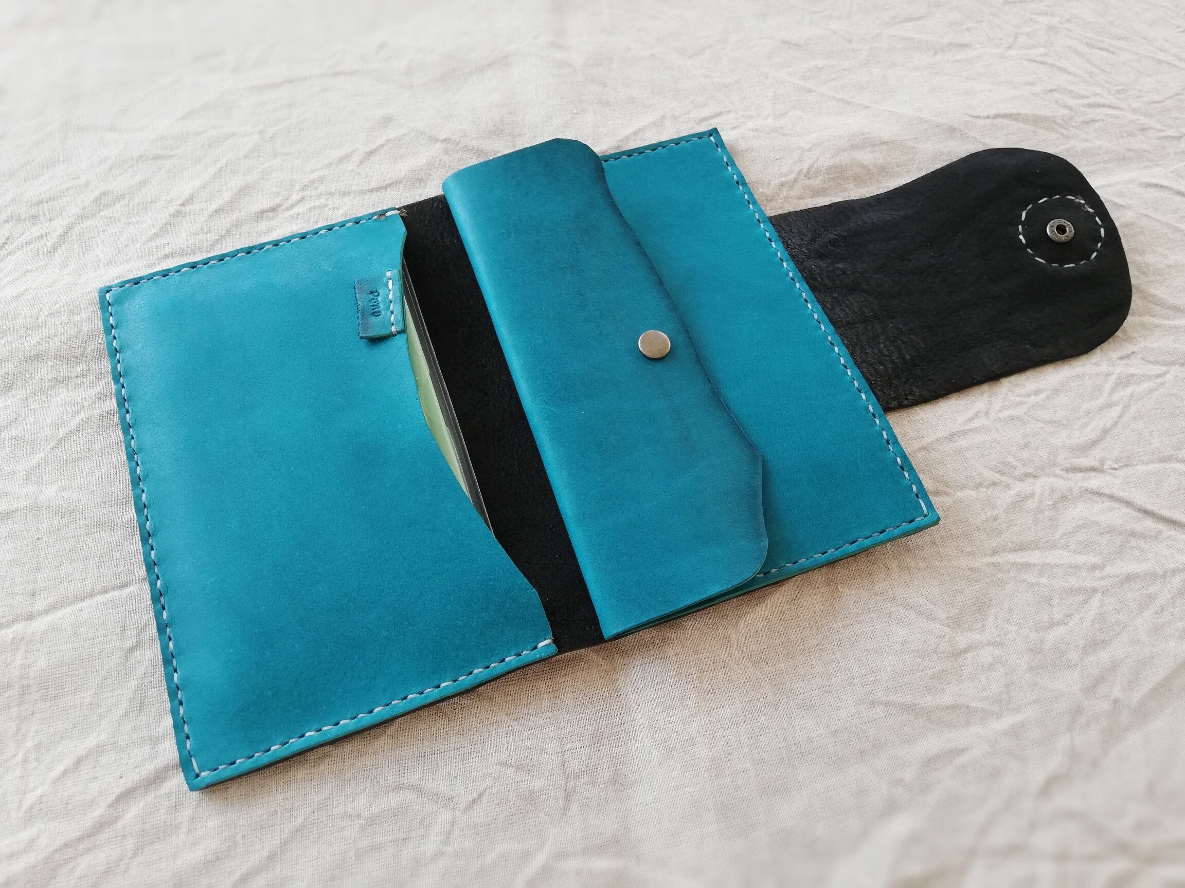 【オーダー品】simple wallet 通帳サイズ ブラック✗セルリアンブルー オイルワックスレザー