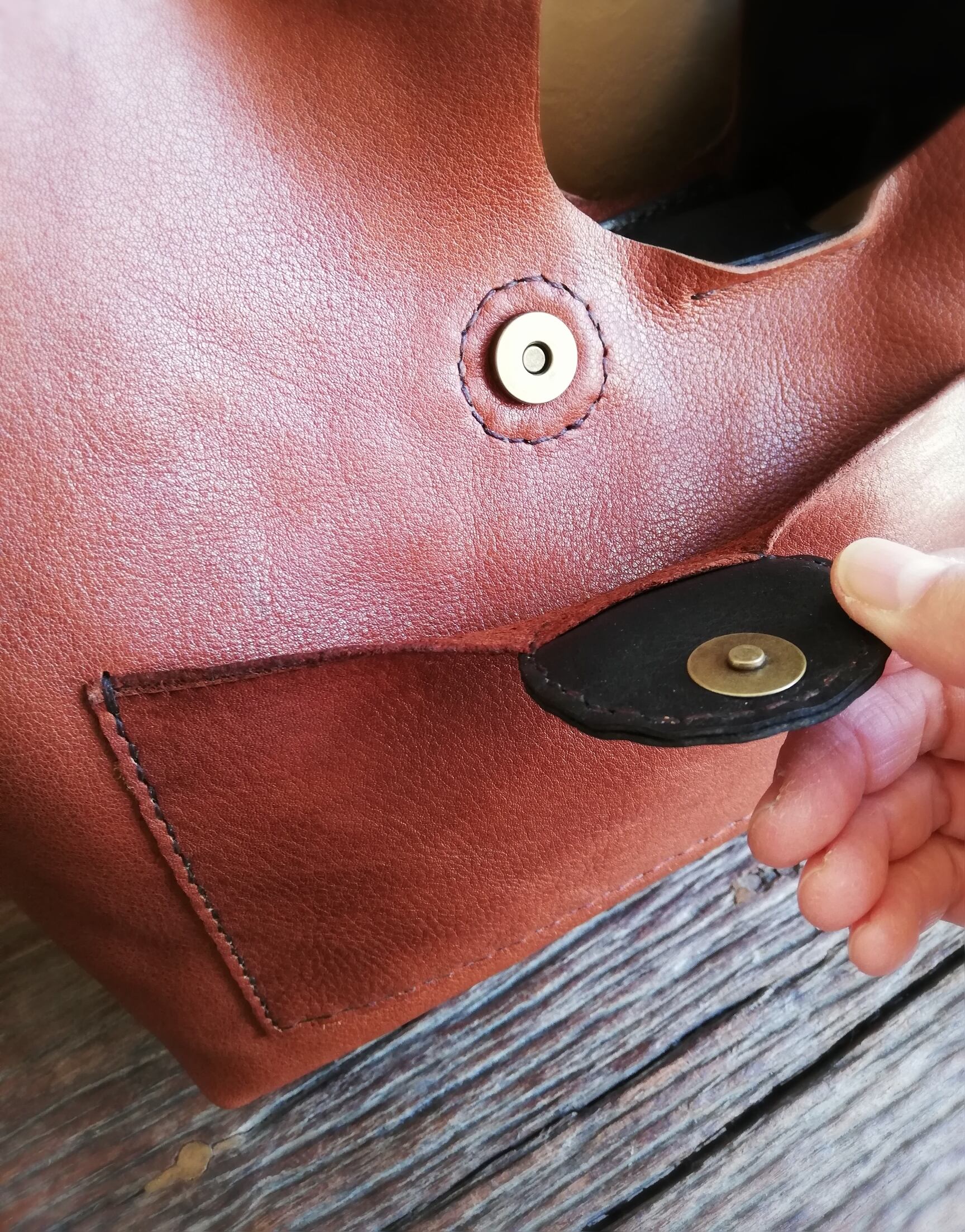 外ポケットにはマグネットボタンを付けました