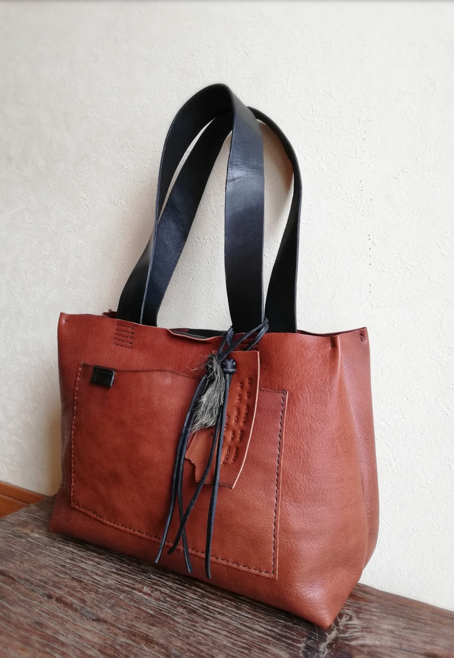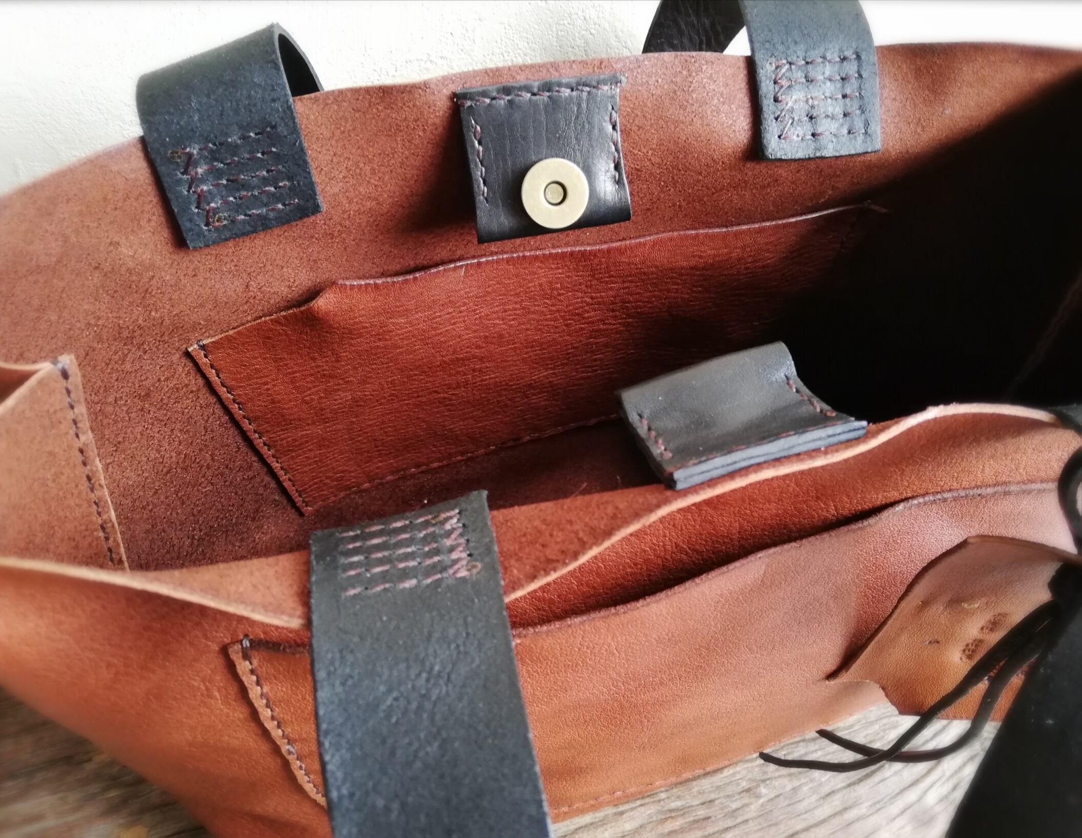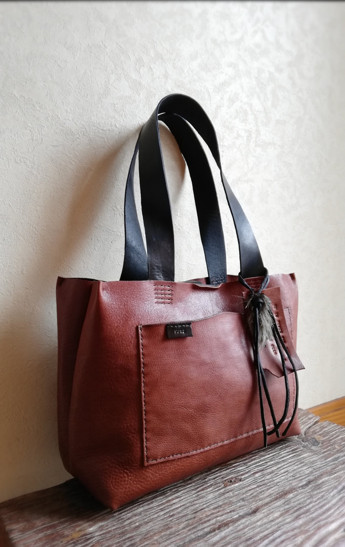 ざっくりtote ブラウン✗ブラック オイルシュリンクレザー
