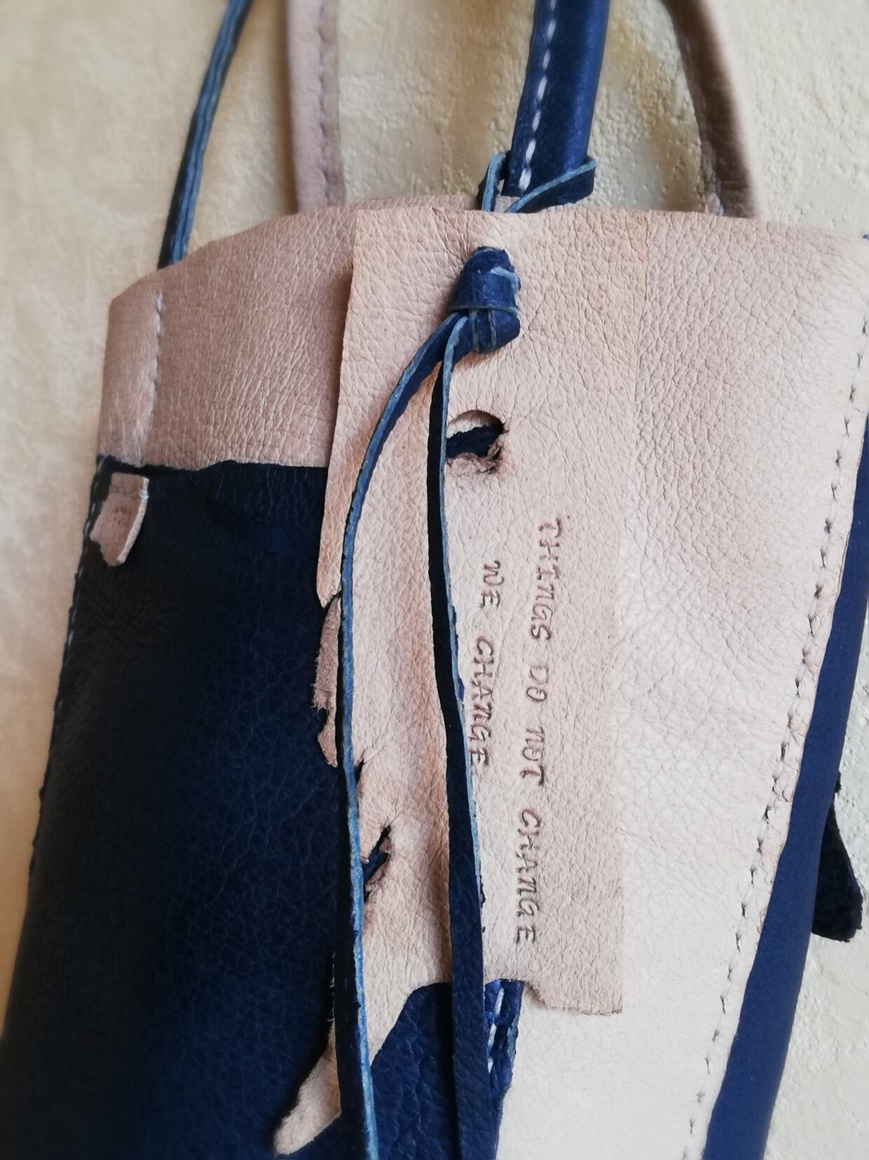 ライトグレーの革タグには、米国の作家、詩人、思想家の名言