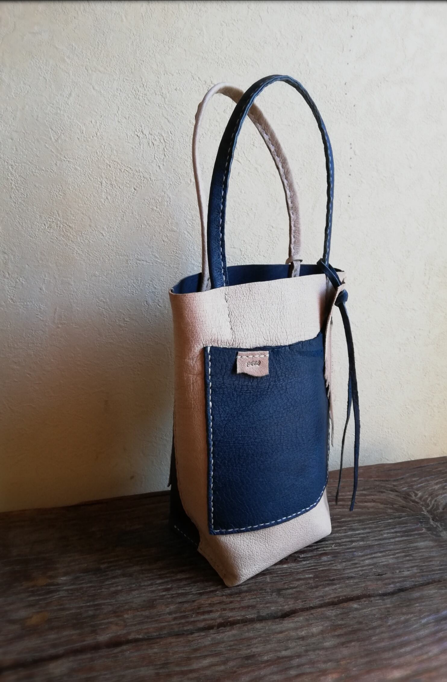 mini tote ネイビー✗ライトグレー ピッグスキンレザー