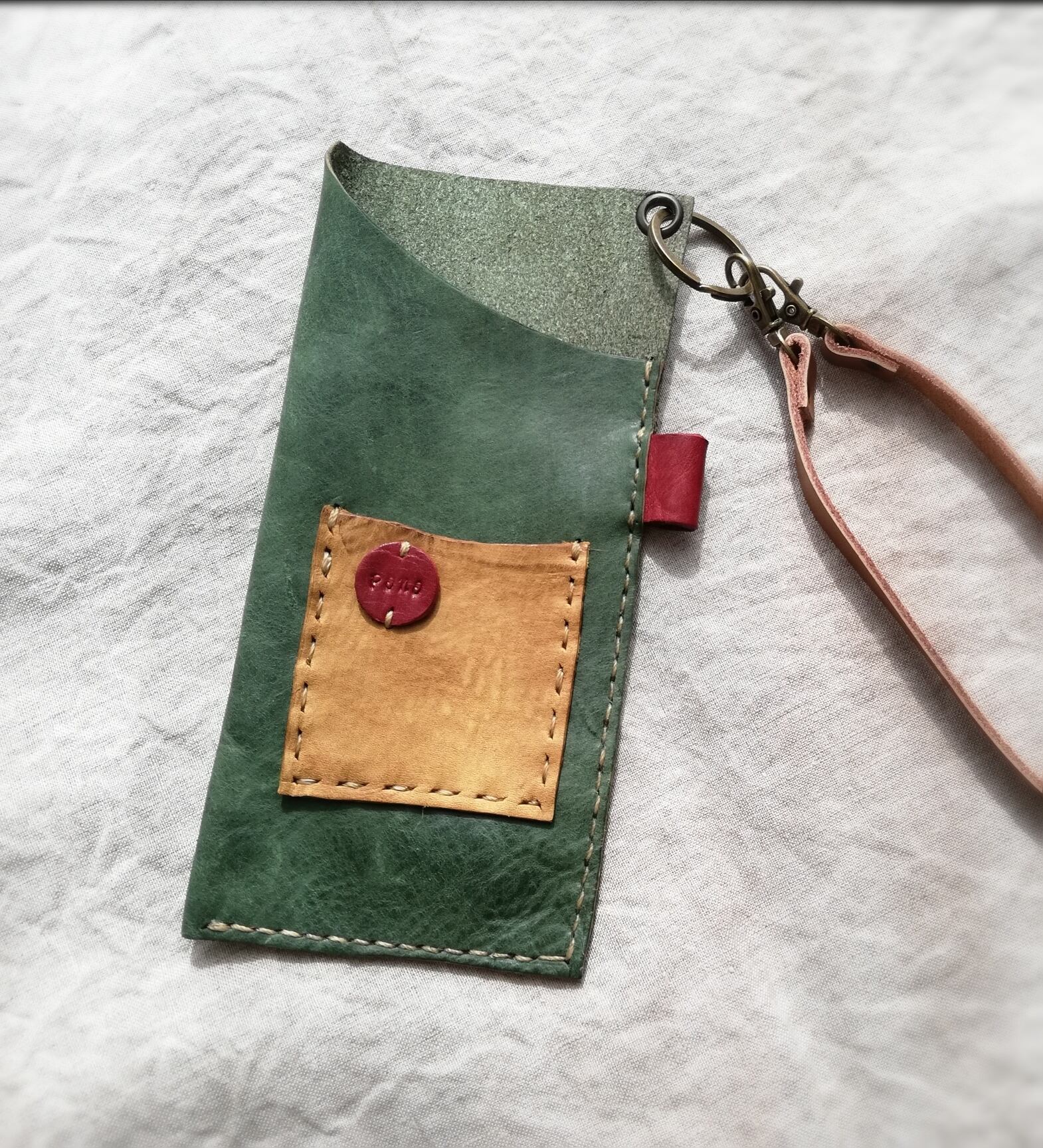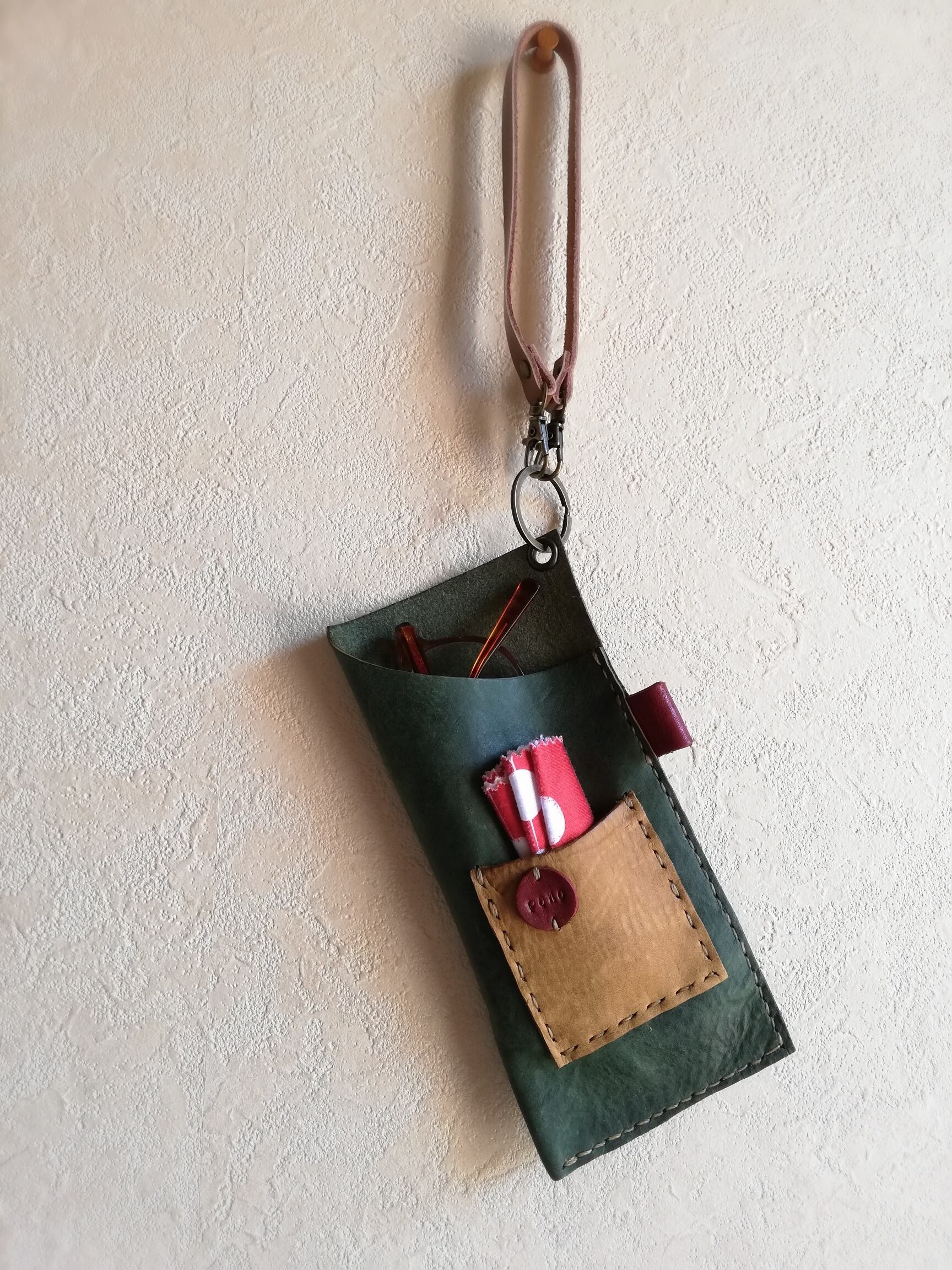 メガネケースホルダー グリーン オイルシュリンクレザー