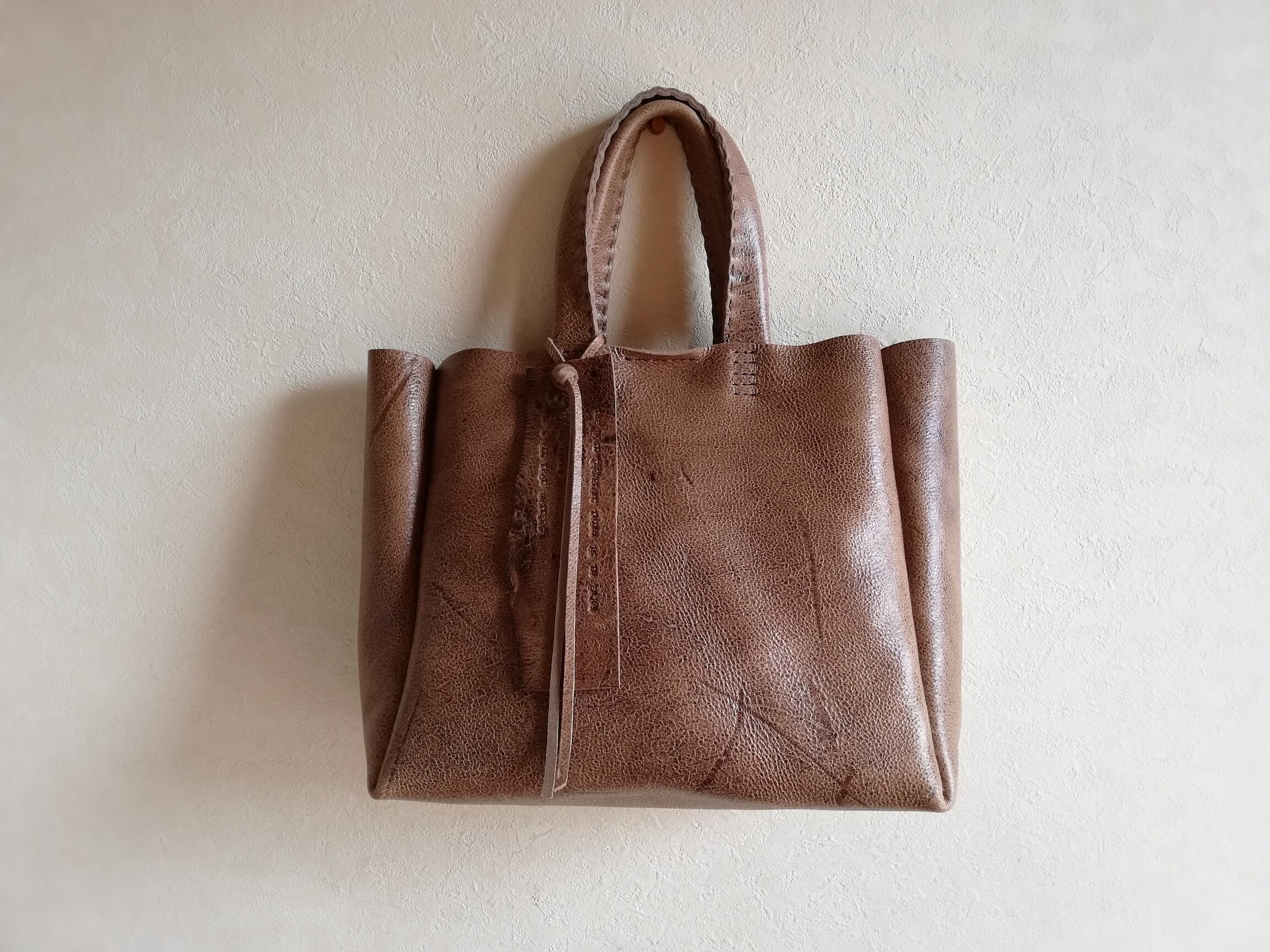 一枚革仕立てのsimple tote ベージュブラウン kudu leather