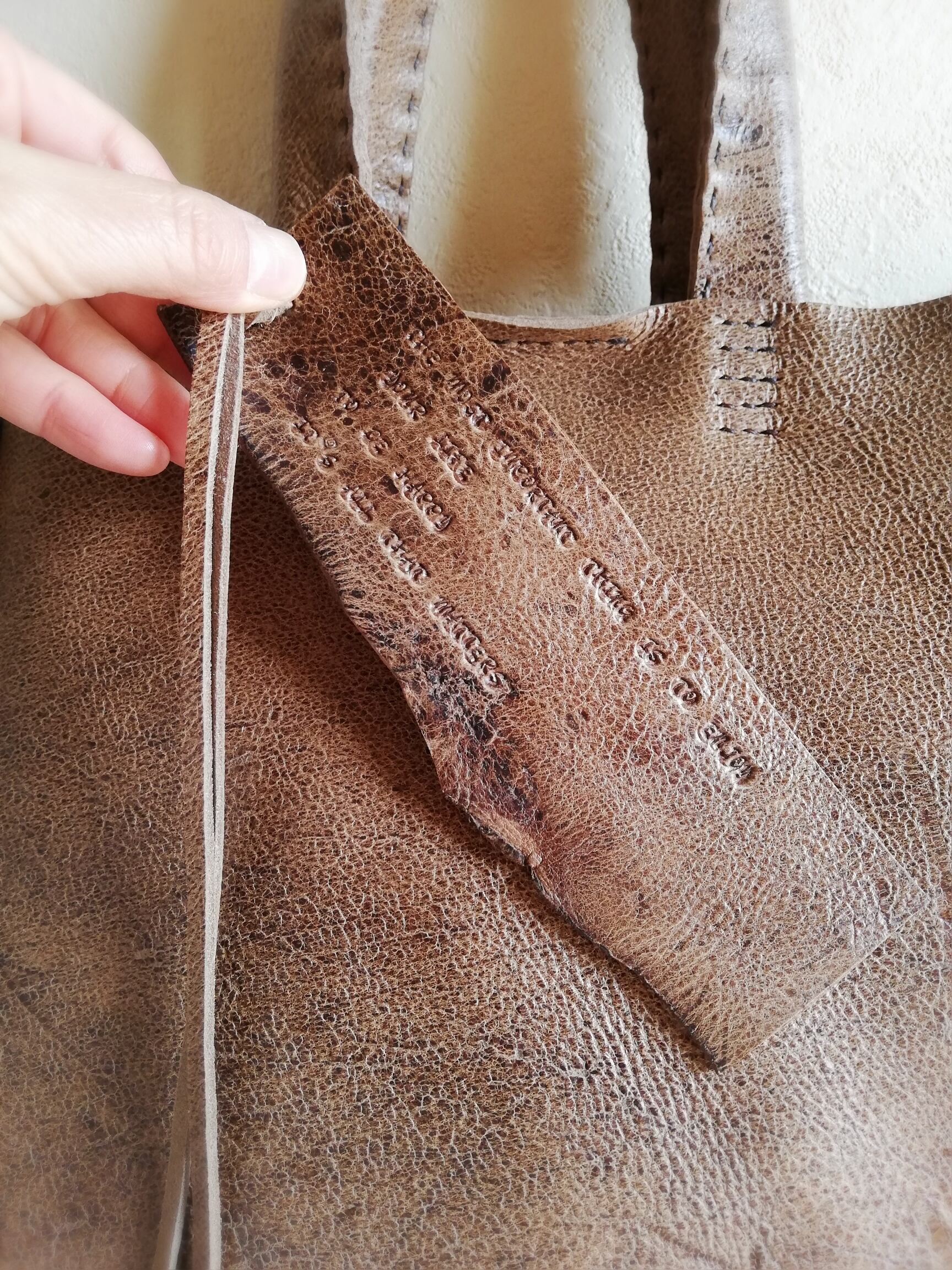 One-sheet leather…かばんの前面や背面などの大きなパーツを、複数の革をつぎはぎしてつくるのではなく、一枚の繋がった革でつくることを『一枚革仕立て』と呼びます