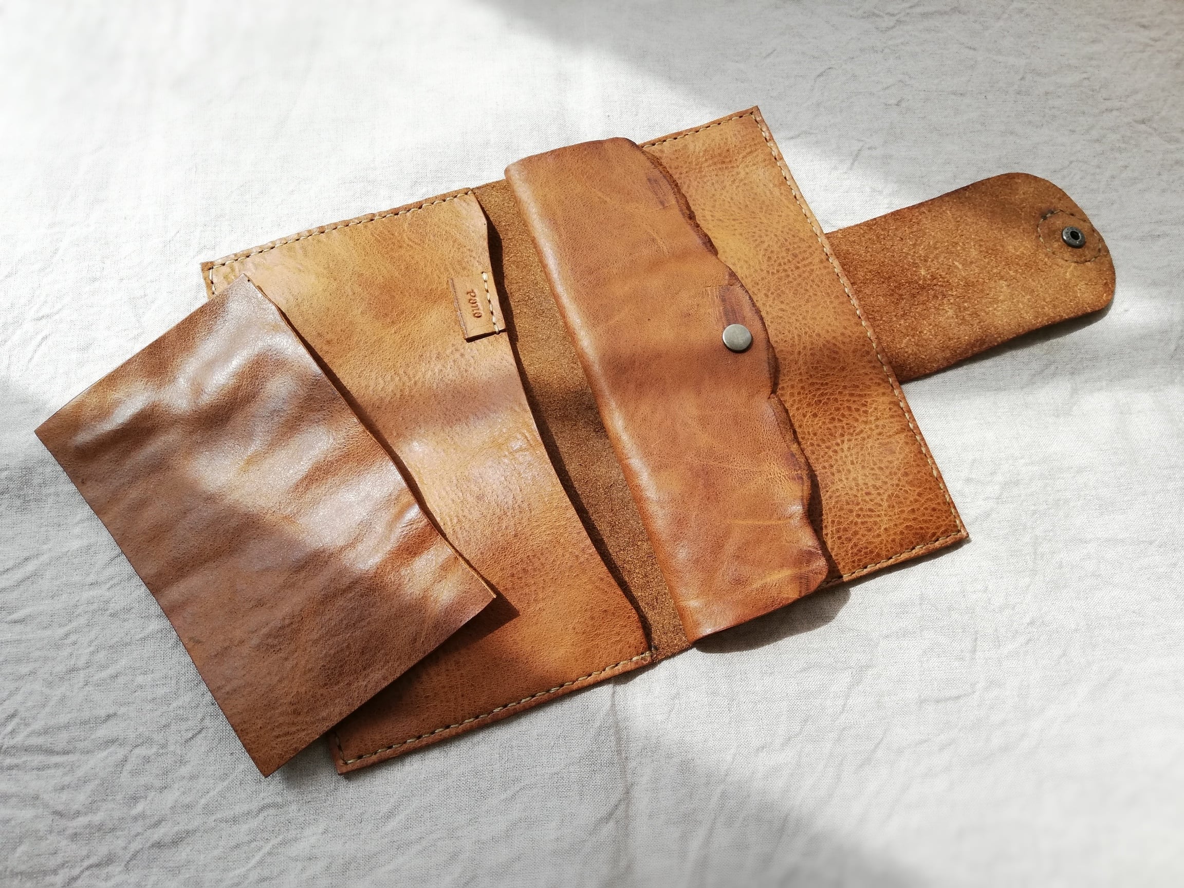 カード&通帳入れには仕切りとして取り外し可能な革を付けましたので、カードや通帳との仕訳にお使いください